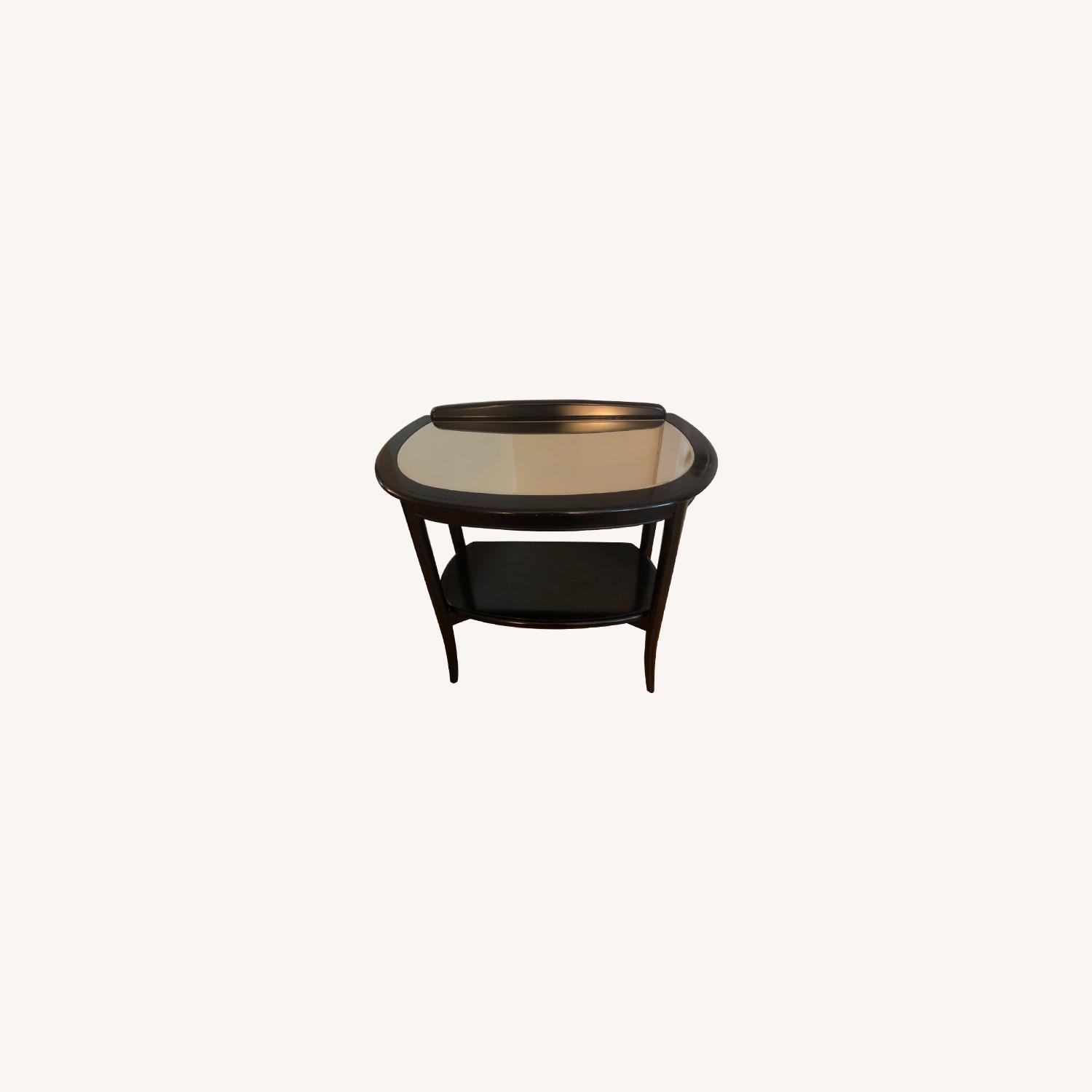 Seller's Notes:Two matching elegant and modern wooden lacquer side tables by the celebrated Morishige furniture brand. Morishige is a premium Japanese furniture company that specializes in handcrafted wooden furniture with an elegant yet modern design aesthetic. These pieces were imported from Japan and are in good condition with minimal wear and minor staining inside the drawers. With a mirrored top surface, a drawer, and spacious lower platform, these tables are perfect for showcasing items like flowers and photos and can store small ancillary items. Images 2-4 are of the first table, and images 5-7 are of the second table. While not the same item, the manufacturer link shows a similar usage item for sale in Japan. See the other complementary Morishige dining room pieces for sale on AptDeco.