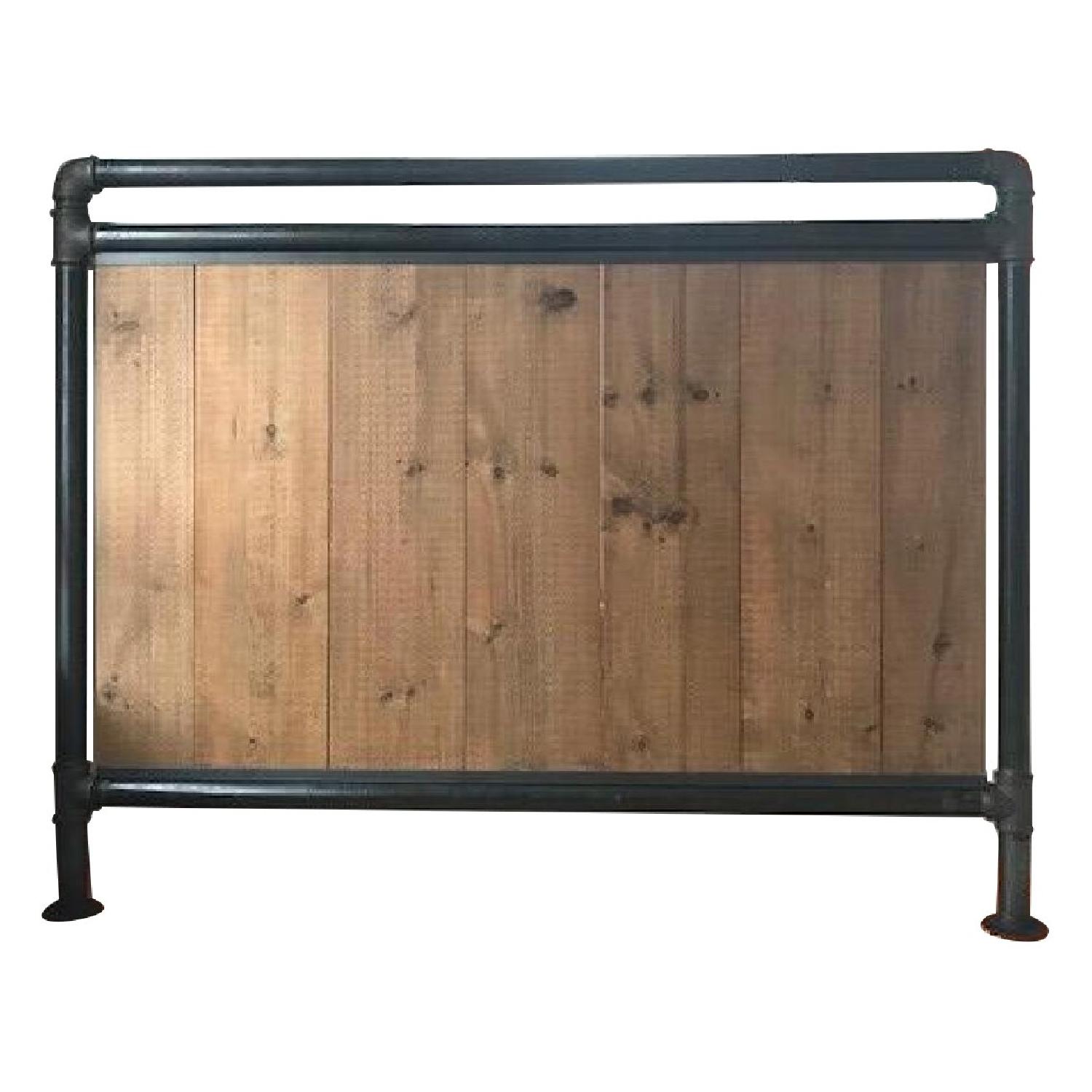Seller's Notes:King sized, custom made metal pipe + wood headboard. We have loved this classic, rustic looking headboard but unfortunately it does not fit in our new apartment. It is just like new and shows no signs of wear or damage. The headboard can be secured safely behind the bed by being affixed to the wall or the floor.