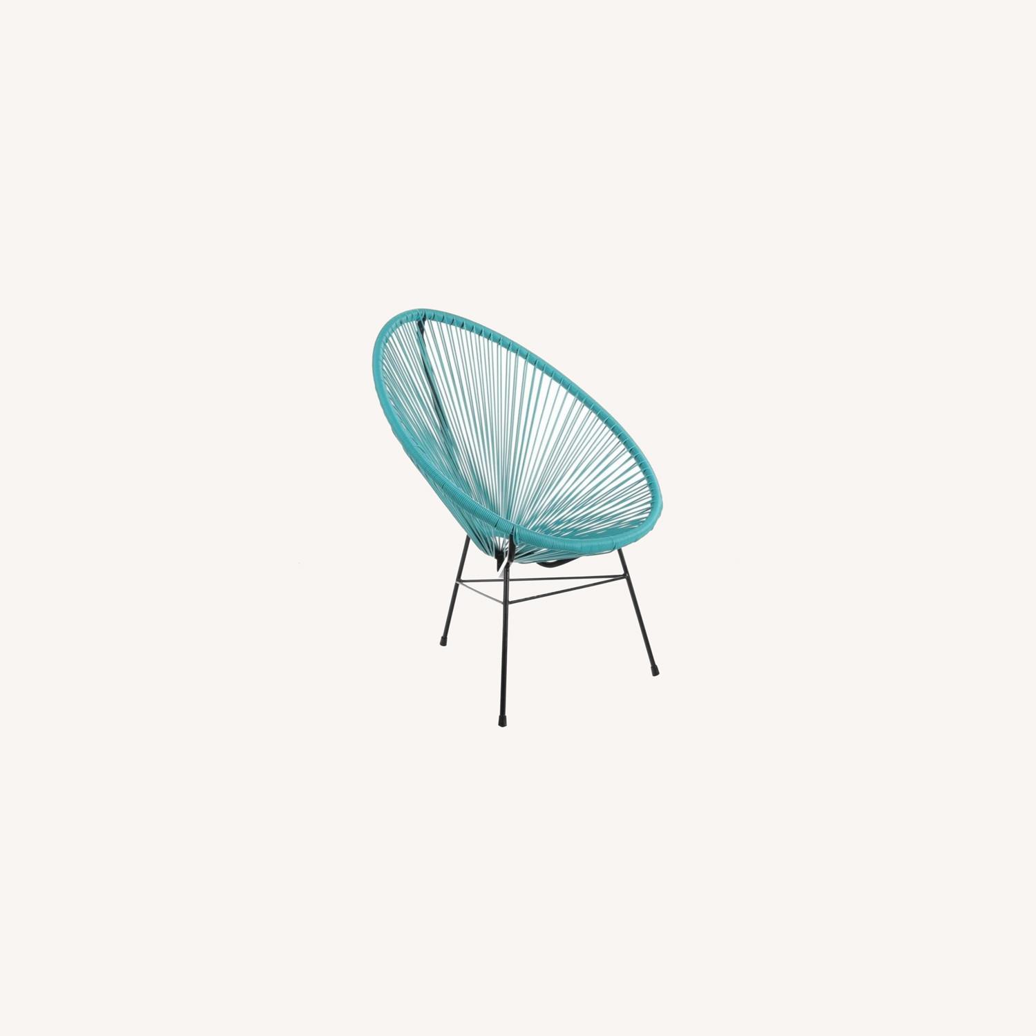 Seller's Notes:This sweet little chair sadly doesn’t fit in my new apartment. It’s a blue Acapulco style chair. I’ve actually never had it outdoors, it’s always been in my living room so it’s still extremely clean and in excellent condition. I purchased 2 years ago for $225, selling for $100 FROM THE WEBSITE: Enjoy basking in the morning sunshine with the Acapulco patio lounge chair by Joseph Allen. Featuring a strong steel frame construction with woven cord for the seat, this lounge chair is weather-resistant for long-lasting use indoors and outdoors. The three-legged design fits into tight spaces for more convenient use. Product Features: Water Resistant Chair Type: Accent Chairs, Lounge Chairs, Deep Seating Material: Vinyl, Steel Style: Mid-Century, Contemporary, Modern Height: 30 to 34 Inches Assembly: Assembly Required Width: 20 to 29 Inches Depth: 30 to 39 Inches Chair Back Height: Standard Country of Origin: China Cushion Material: Plastic Exact Color: Grey Seats Up To: 1 Color: Blue Size: Single https://www.overstock.com/Home-Garden/Joseph-Allen-Acapulco-Turquoise-Blue-Vinyl-Steel-Indoor-Outdoor-Patio-Lounge-Chair/19458950/product.html?opre=1
