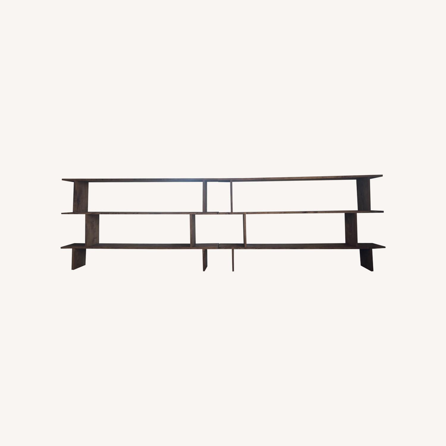 Seller's Notes:This is a stunning pair of solid wood modern étagère bookcases. They are designed to span the length of a wall together, but are equally gorgeous individually. These were handmade with solid ash wood and are incredibly sturdy. They will last you a lifetime. Custom stained with low-VOC stain and sanded to perfection. Use these to proudly display your library, travel treasures, collectibles, and more!