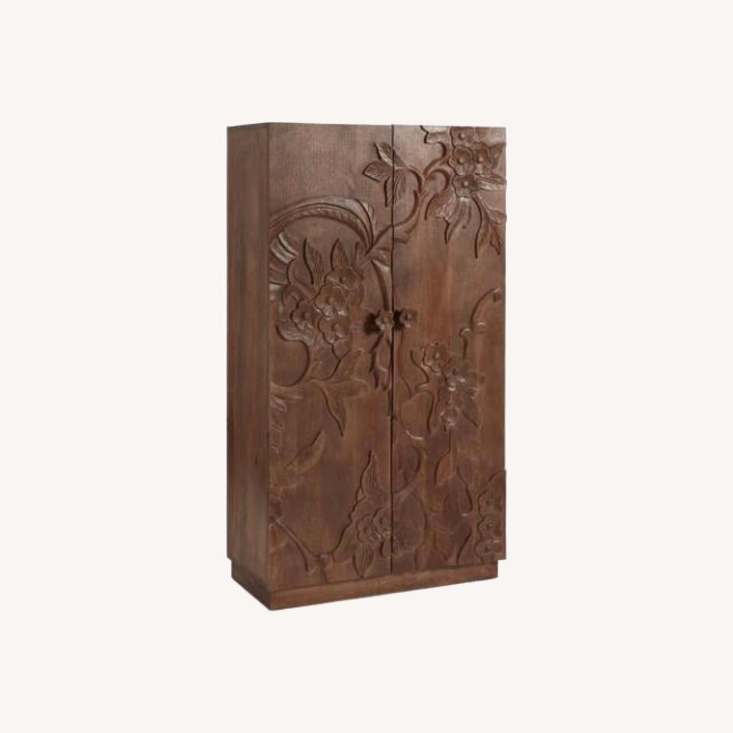 Seller's Notes:FREE DELIVERY AND BY OWNER Handcrafted of mango wood with natural finish 2 drawers 2 fixed shelves 1 adjustable shelf 4 compartments Overall: 35"W x 17"D x 65"H, 157 lbs. Leg height: 3"H Drawers: 16.25"W x 14"D x 4.1"H each Shelves: 33.5"W x 14.3"D each Distance between shelves: 11.7"-14.7"H