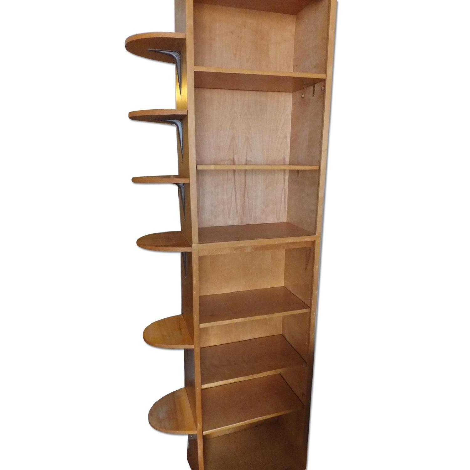 Seller's Notes:Two separate pieces when stacked measure 95" high are being sold as one. The bottom piece is 53 1/2" tall and the top piece is 41 1/2" tall. They look perfectly seamless together due to the cleaver craftsmanship design which allows them to lock together in the middle. This bookshelf is sturdy and has been kept lovingly in the same spot since it was purchased. We have a pet-free, pest-free, smoke-free home. We are the original owners of this beautiful bookshelf. This classic piece is made of top grade White Ash solid hardwood which we personally selected from the lumber yard in its raw state. We watched as the large planks were cut down to our specifications to be built to fit against a 23" wide wall space. We chose hardwood because of its beauty, stability and strength. This hardwood was kiln-dried at a controlled temperature to reduce its moisture content which prevents re-absorption of moisture and has allowed it to remain stable over time and also less likely to swell, shrink, crack or warp like cheaper woods will as they age. A coat of clear matte varnish was applied when it was built in order to maintain the fantastic natural appearance. 50% OFF APT DECO'S WHITE GLOVE PROFESSIONAL DELIVERY SERVICE. SAVE TIME, EFFORT, ENERGY & MONEY :-) Body and shelves have 3/4" wood while the trim is finished with 1" wood. The rounded shelf extenders appear to float off the left edge of the bookshelf but are reinforced with brown metal L-brackets. The underside of the main shelves have been reinforced with mini-L's to provide additional support and stability for heavier items. It comes with 24 Hafele 5mm, steel, nickel-plated shelf supports (as pictured) so you can adjust shelving to your needs since the inner side walls have pre-drilled slots. You can raise the shelves, lower them or even add more shelves as you wish. FREE BONUS: full length heavy cream sateen curtain which can be attached to the velcro on the top shelf to cover up your belongings or the velcro can be easily removed if you don't need the curtain and want your items on display.