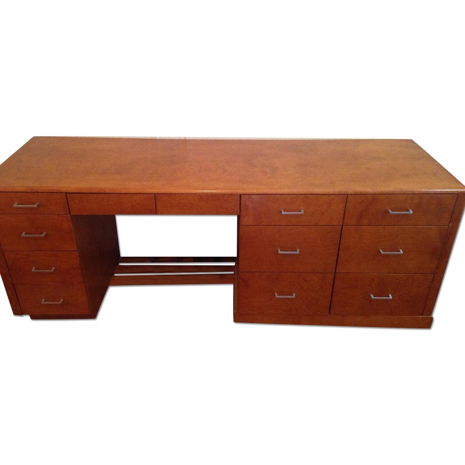 Seller's Notes:This desk / dresser was handmade for a house in Los Angeles. It was part of a corner unit - the seating part of the unit has already been sold. It works as a stand alone desk/dresser. It was then moved to NY with me. I have used it in three different apartments. It is absolute beautiful wood in excellent condition. There are 4 desk drawers on the left side. Two smaller desk drawers at the seat. And six large dresser drawers on the right. I cannot take a photo of the back of the desk. It is too heavy to move. the back should be up against the wall. It is not finished like the rest of the piece. Full disclosure - one of the dresser drawers sticks a little bit. And the tracks of another dresser drawer have been take off because they got bent. I have those tracks. They just need to be replaced. The dresser drawer opens smoothly but it isn't on tracks.
