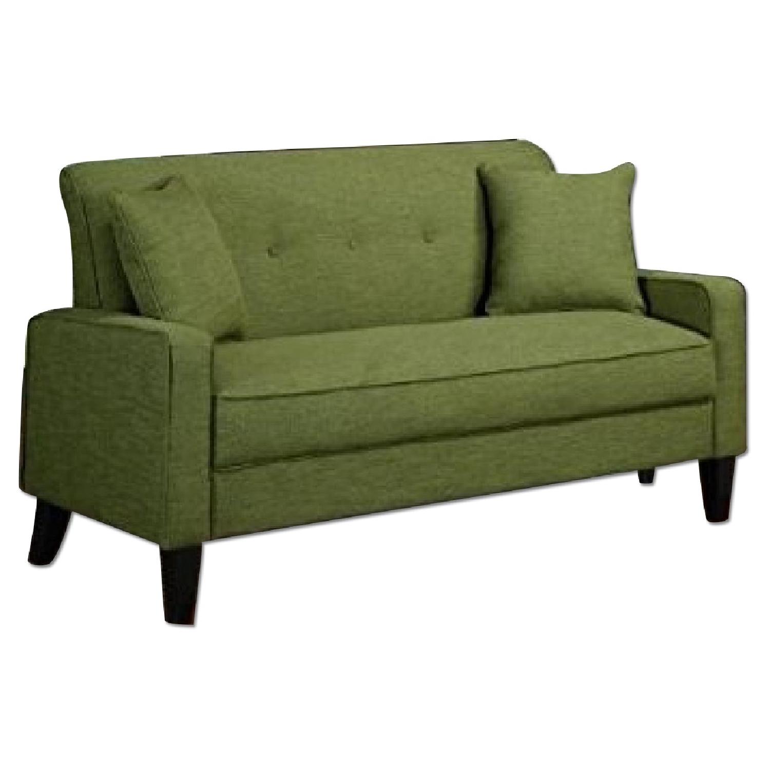 Seller's Notes:Got this couch on brand new on AptDeco last year - but now I'm moving out of the country and will not be taking it with me! - Built for smaller apartments - this couch comfortably seats 3 people. - The stylish green color has been complimented by everyone that enters my apartment! - The couch is very easy to dismantle and move, seeing as the legs and arms come off and can be stored in the zipper panel beneath the cushions. - Comes with original instructions.