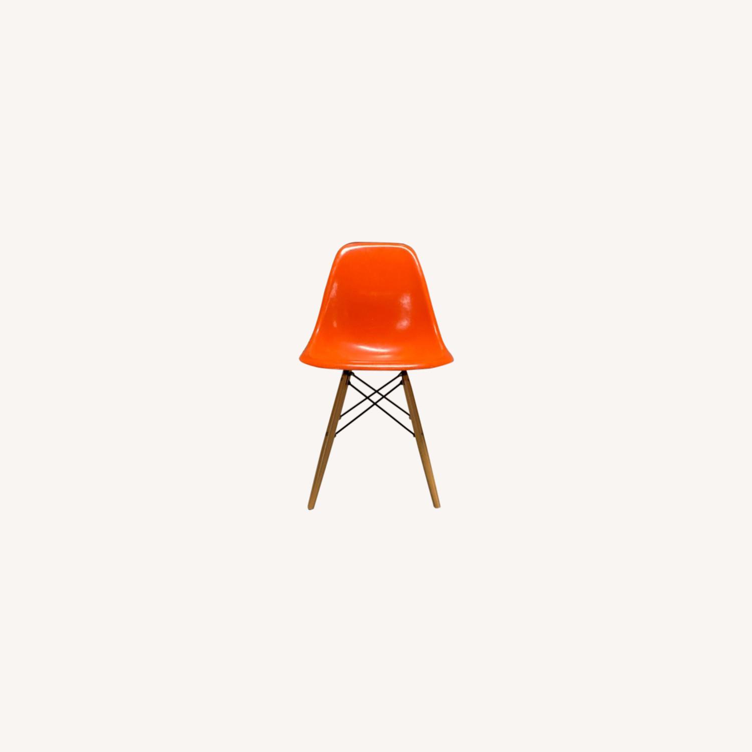 Seller's Notes:Here we have an authentic Hans Wagner orange shell chair with original sticker and stamp. The base seems to be new it is in the shape of the Eiffel Tower bases. It is in great condition please look at photos. There is one scratch on the lower back side. Great chair.