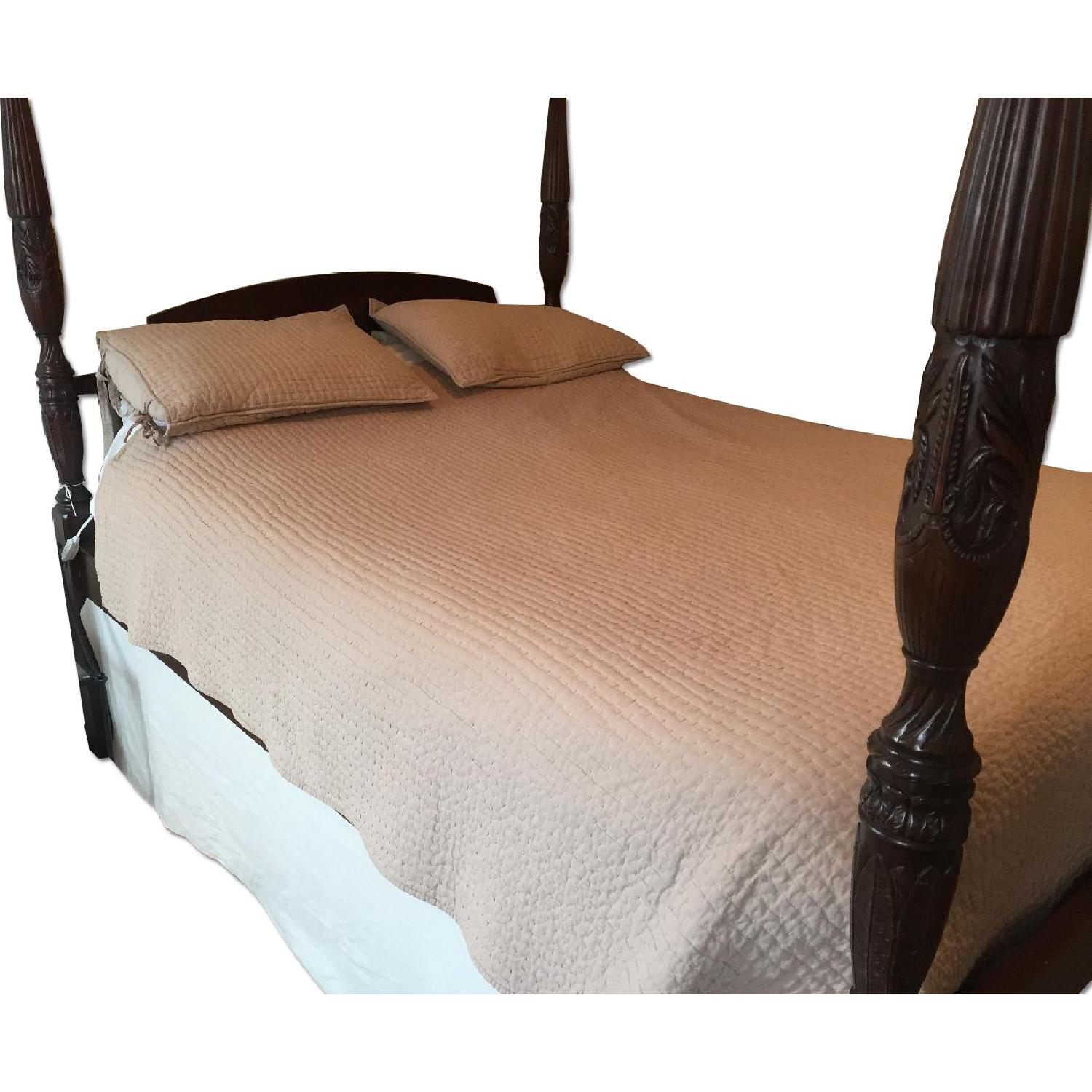 Seller's Notes:Selling a Harden Queen sized Cherry bed from around 1990. Comparable to the current Harden 639-13 bed. Top of the frame is 24" off the ground, posts go up to 87.5" inches. Signs of wear are mostly minor scratches and scuffs near legs. Front right post is a little wobbly, the post tops are also a little wobbly and could use some TLC. Headboard and frame are otherwise in good condition. It's been loved for many years, but we are switching up to a new frame without posts. 10-drawer dresser and mirror from same collection also being sold.