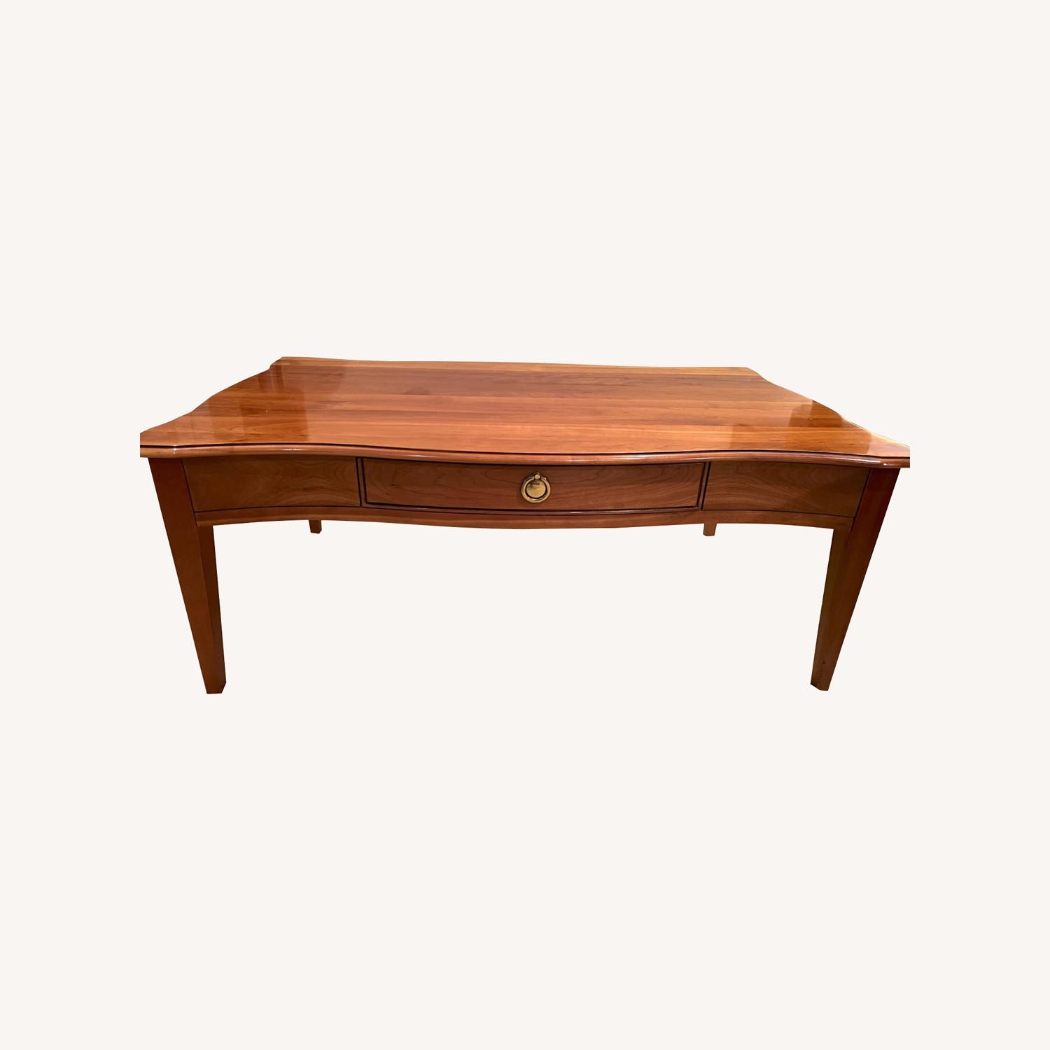 Seller's Notes:Harden coffee table with a drawer. Minor dent on the top right and some faint surface scratches that couldn't be photographed they are so light.