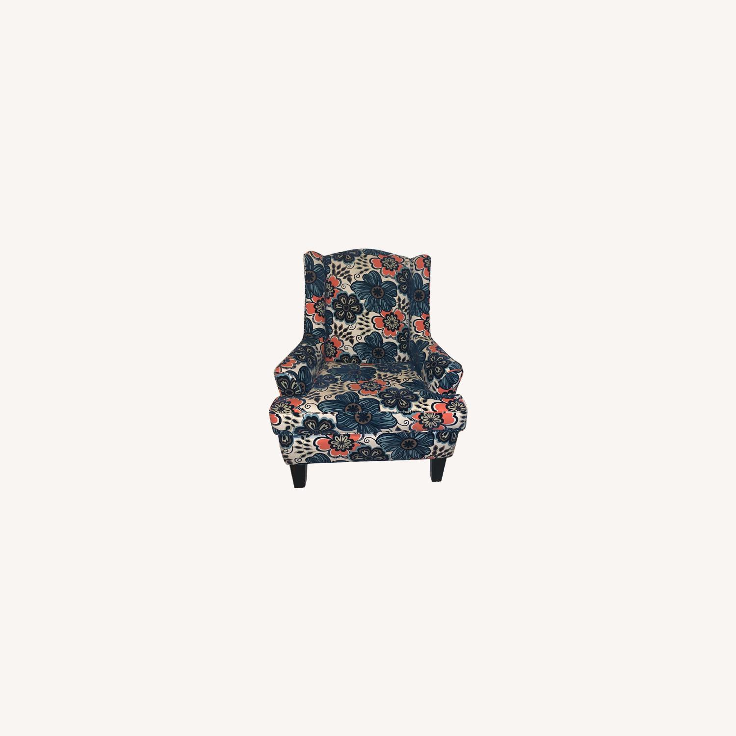 Seller's Notes:These two of kind Forest Lane chairs were custom made for me. They are a posh accent piece for any space and two I've loved for years. While they look like new for being 5 years old. Upholstered in a beautiful multi-floral print, this chair features an elegant, timeless silhouette. Complete with high-density foam cushioning and padded arms, it's sure to be a comfortable and stylish addition to your master bedroom, guest room or living space. Padded arms Banded base Tapered legs in grey finish (other finish options available) Back legs feature elegant, curved detail Seat height: 20.5" Crafted with no-sag springs