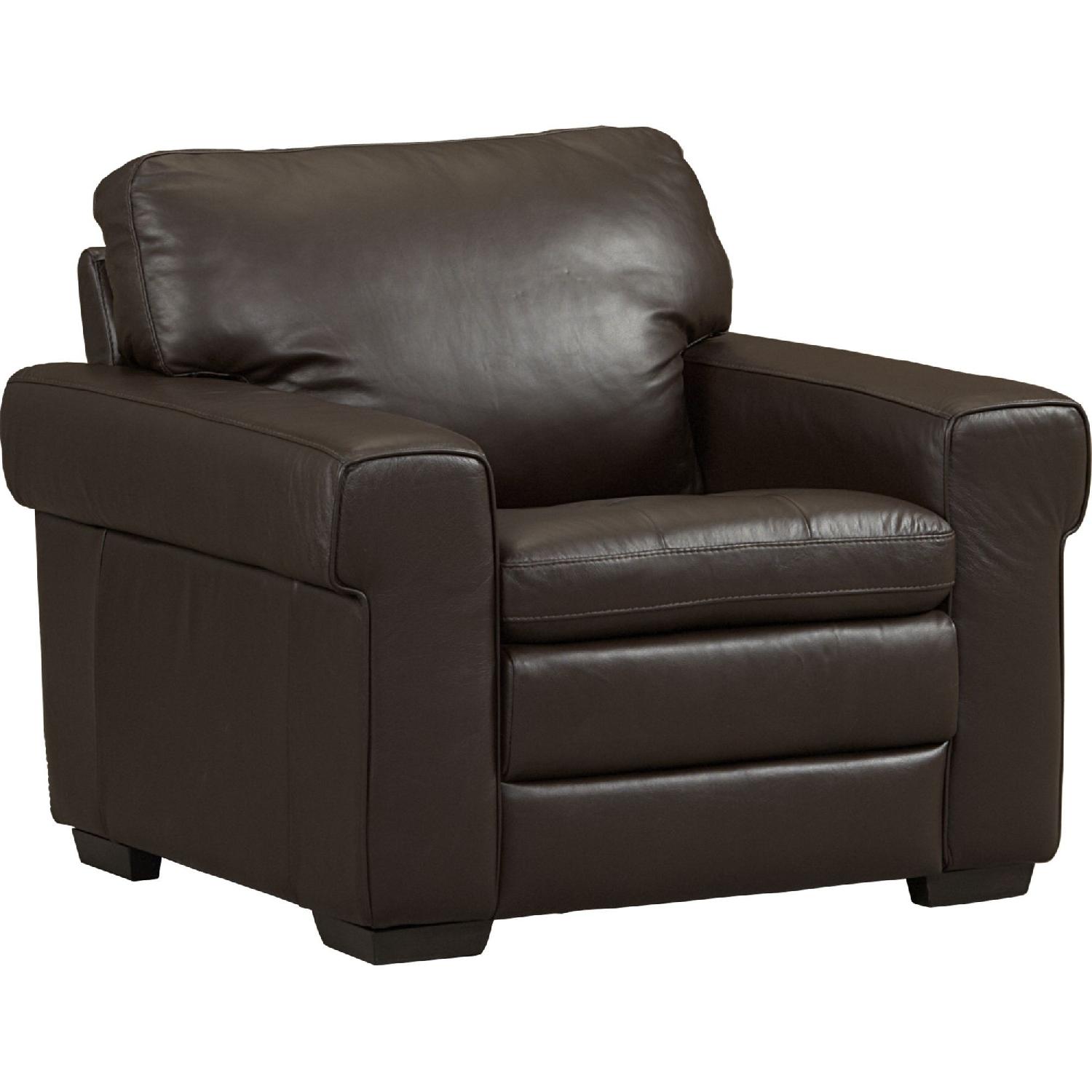 Seller's Notes:Havertys Galaxy Chair and Ottoman. Brown leather, still in very good condition. Purchased in spring of 2015, but now I'm moving and need to downsize otherwise I'd love to keep them. Ottoman dimensions 24" X 22" x 17"