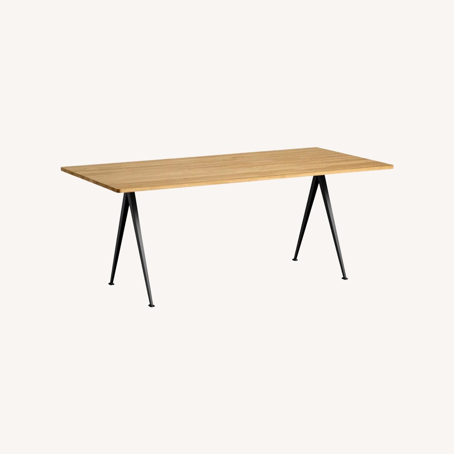 Seller's Notes:Designed to be functional, light and strong, the Pyramid Table 02 features a black steel-sheet base and oak top that create an uncluttered workspace. Originally created by Wim Rietveld in the 1950s, the Pyramid collection has been relaunched by HAY with Ahrend.