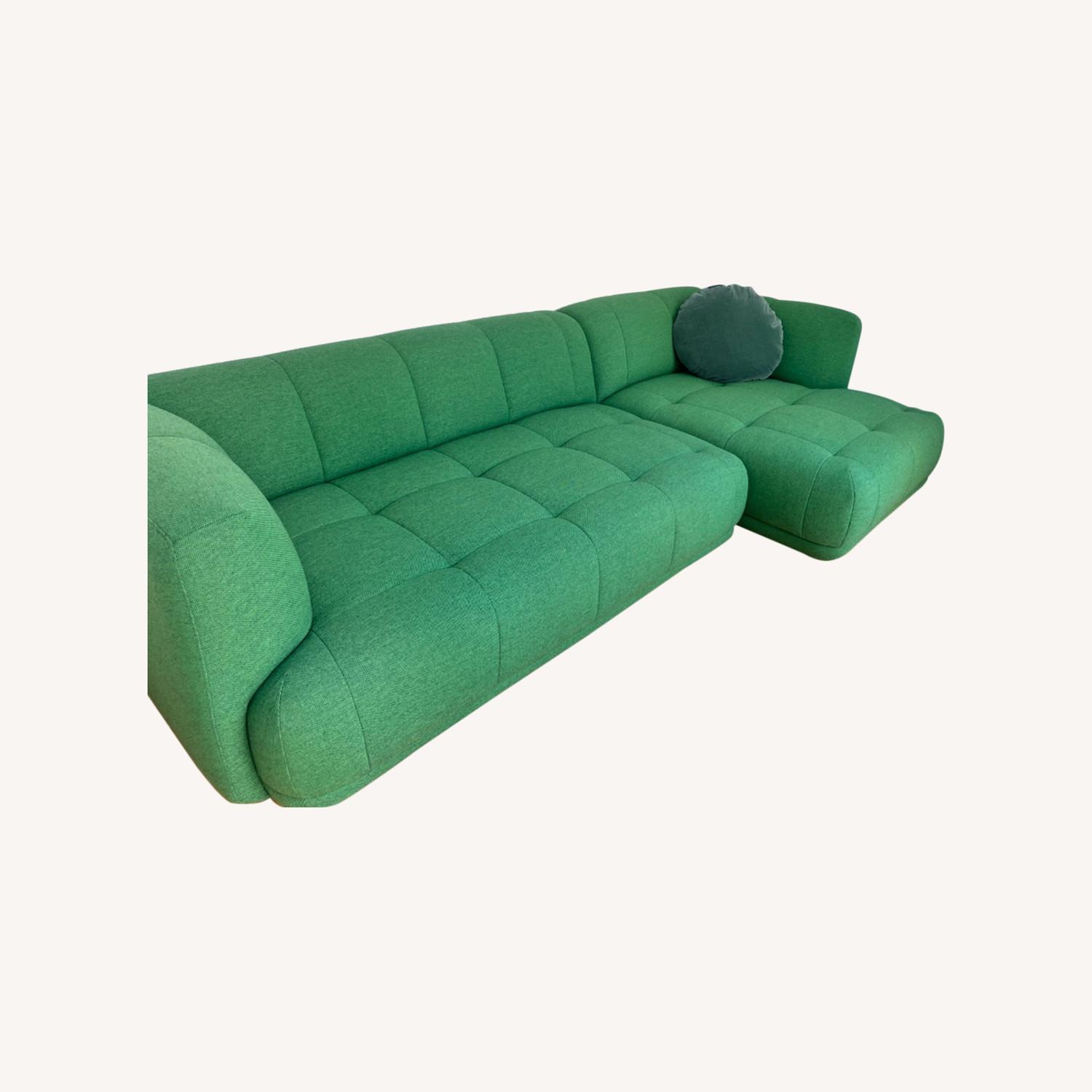 Seller's Notes:Hay sofa sectional in a gorgeous green color. In a home office and was barely used.