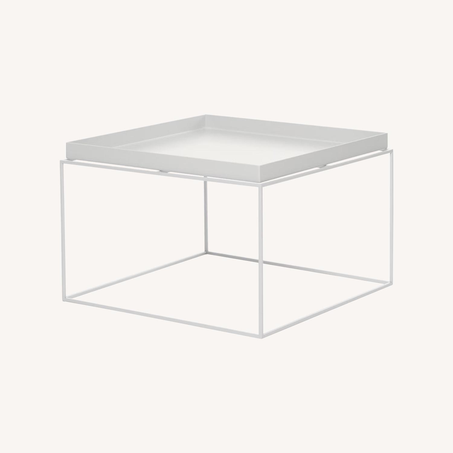 Drawing from the best of architecture and fashion, designers for Danish design collective HAY favor innovation, technology and color. The metal Tray Coffee Table (2010) is a multifunctional piece of furniture with a tray top that lifts easily off its base, featuring high edges for keeping objects securely in place. The slim and simple base complements a variety of interiors. Tray is not food safe. Made in China.