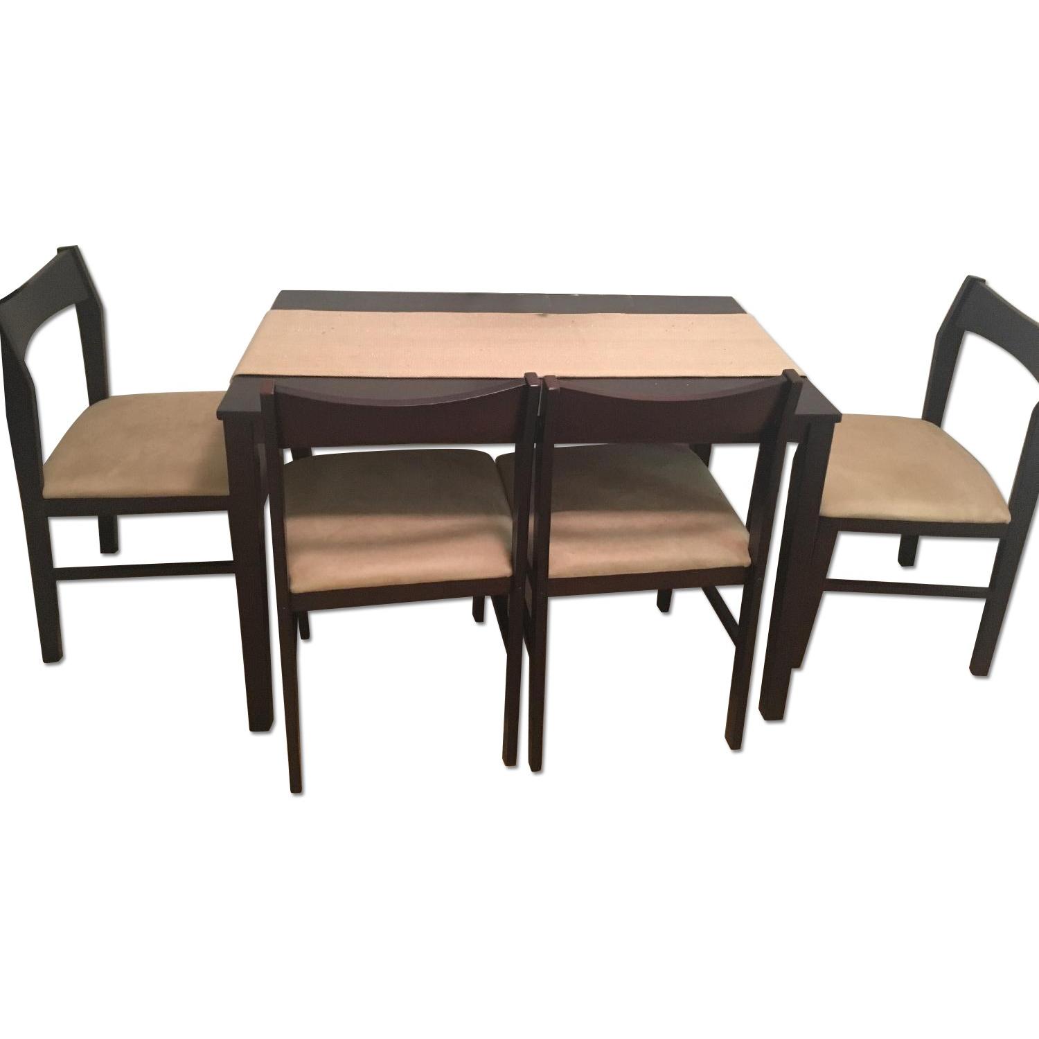 Seller's Notes:Less than one year old! The 5-piece Transitional Dining Set by Simple Living is perfect for a small loft or dining area. From the espresso finish to the foam-filled microfiber seats, this set is stylish and comfortable. The comfortable dining set features chairs with an open back design and bent top rail that are a designer's dream. Be a trend setter and redo your dining area today. Shape: Rectangle Exact Color: Espresso Finish: Espresso Finish Color: Brown Size: 5-Piece Sets Dimensions Table: 29.1 inches high x 27.5 inches wide x 45 inches long Chair: 33.75 inches high x 19 inches wide x 18.5 inches long
