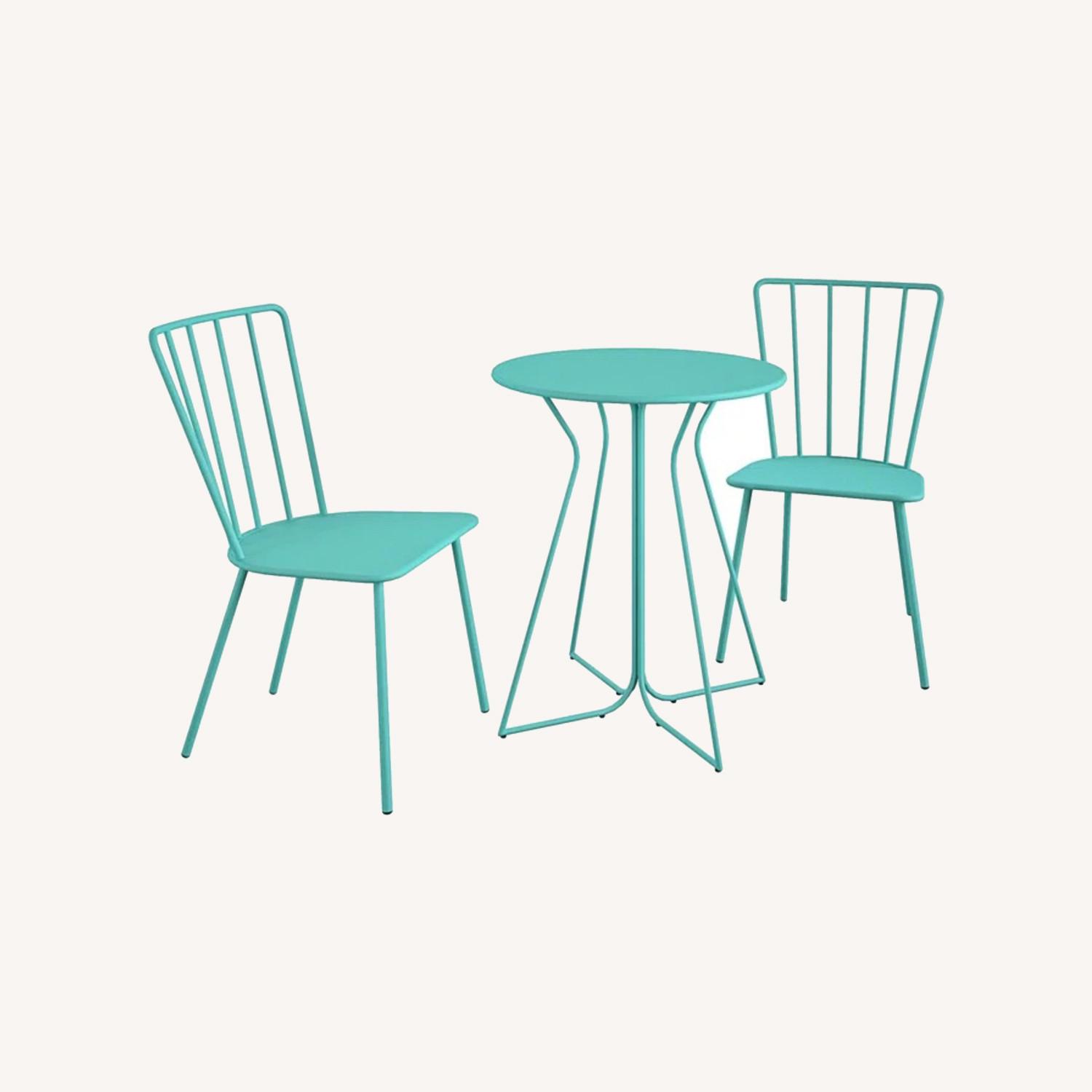 Seller's Notes:Elevate your outdoor space with this chic bistro set. Crafted from powder-coated steel, the chairs and table are designed to withstand the elements. The sleek round table provides the perfect surface for enjoying meals or sipping coffee. Whether on a balcony or patio, this set adds a touch of modern charm to any outdoor setting. This has been a staple on my balcony for the past 3 years! It’s still in great shape, I just done have an outdoor space at my new apartment. Minor discoloration and some outdoor dirt in the crevices but very easily cleaned! Product Type Bistro Set Number of People Set Accommodates 2 Chair Included Yes Number of Chairs Included 2 Chair Frame Material Powder Coated Stainless Steel Seat Material Metal Table Material Metal Top Material Metal Table Top Shape Round Cushions Included No Durability Weather Resistant; Water Resistant; Rust Resistant