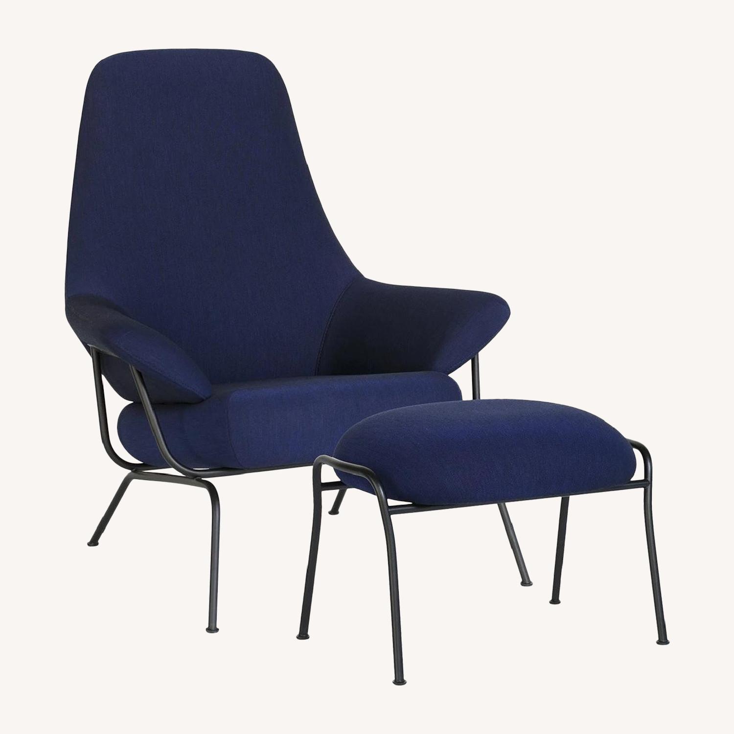 Seller's Notes:The chair and ottoman are in great condition. I originally purchased both for $1699 a year ago. No signs of wear or tear. Here are the specs from the site: Dimensions: Hai Chair: L: 34.2 x W: 34.6 x H: 39.4 in; Seat height: 15.7 in Hai Ottoman: L: 22.8 x W: 15.7 x H: 15.7 in Materials: Upholstered moulded foam, Steel frame, Fabric: 68 % wool / 22 % polyamide / 10% polyester, Martindale 80,000 Colours: Blue; Legs: Black
