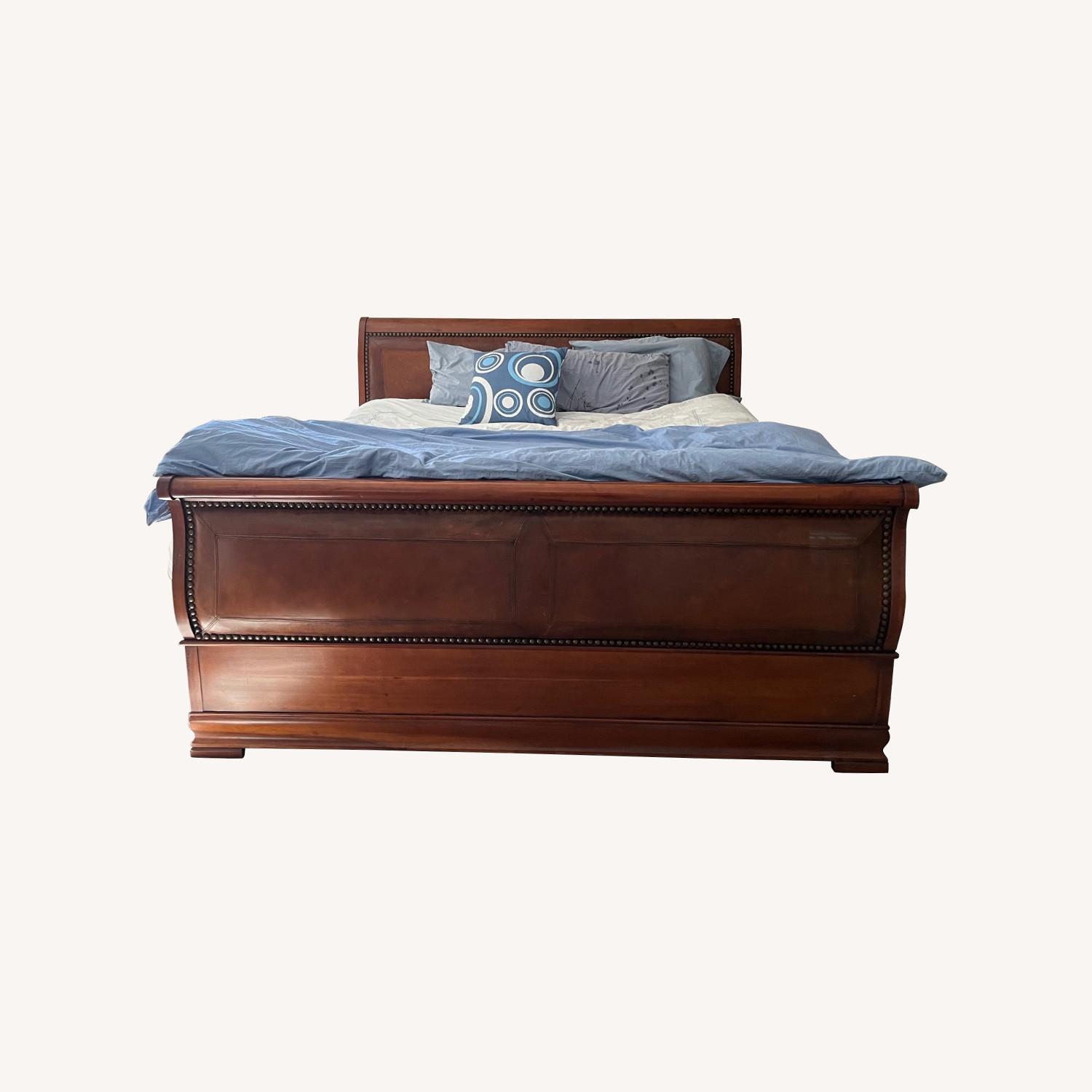 Henredon Dark Brown Wood/Leather King Sleigh Bed