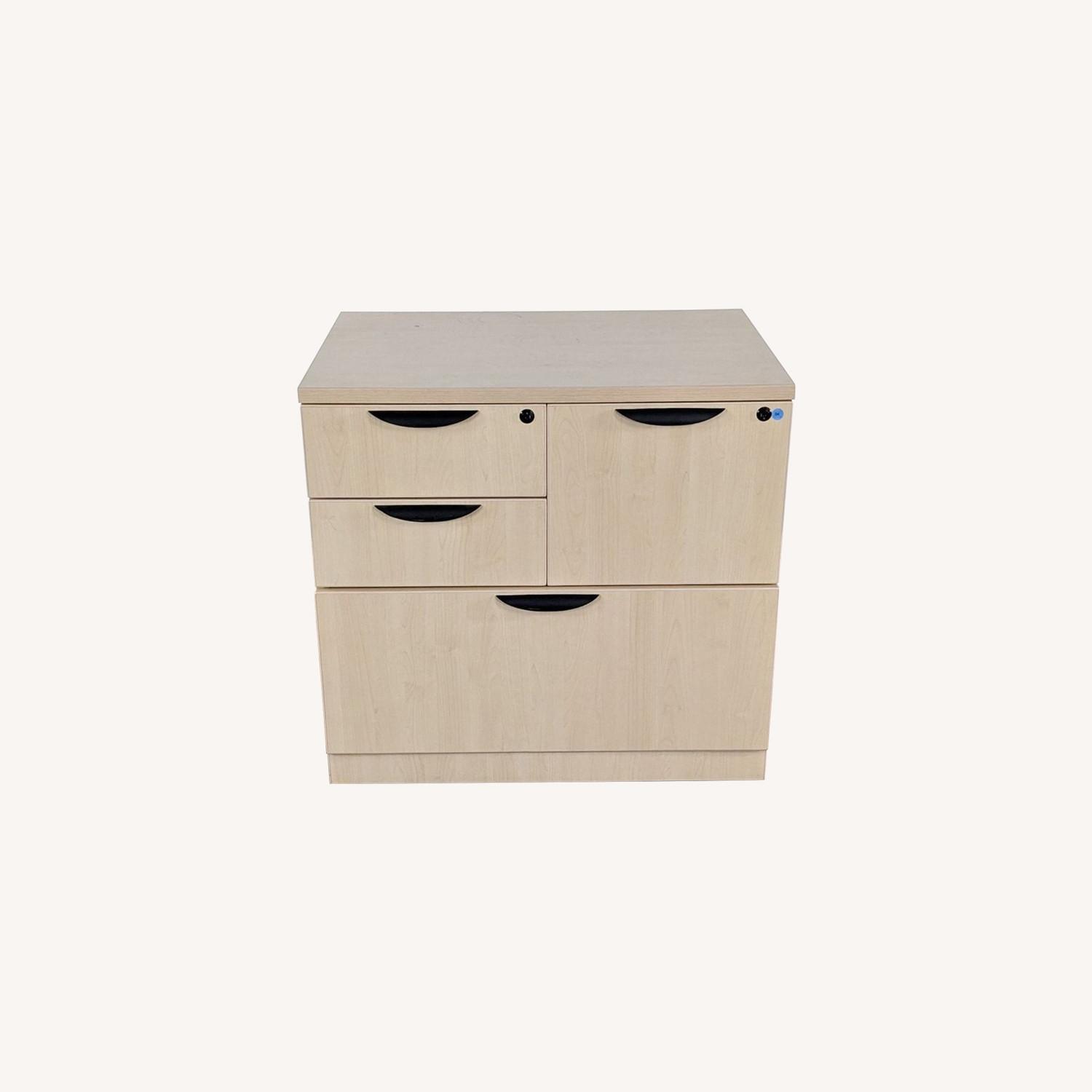 Seller's Notes:This combo lateral filing cabinet includes two box drawers, a standard filing drawer and a lateral filing drawer. TWO locking compartments with keys included.. Brand: Herman Miller. Model: . #SKU: 1046932