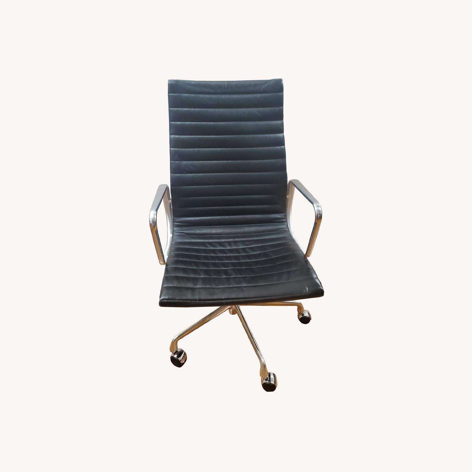 Seller's Notes:The Eames management chair is part of the Eames Aluminum Group Collection. These distinctive chairs resulted from the Eames's experimentation with aluminum, which became more affordable after WWII. Today, the management chair has aluminum side ribs that hold the one-piece, seat-back suspension taught to create a flexible "sitting pocket" that gently cradles you as you sit. And a pneumatic lift and swivel mechanism allow for personalized adjustment. Lightweight aluminum frame. Pneumatic or manual seat-height adjustment. Seat subtly conforms to the body’s shape. 360-degree swivel. Tilt feature with locking capability. Comes with carpet casters Eco-Friendly Description: Indoor Advantage Gold Certified - Indoor Advantage Gold certification is SCS Global Services’ highest level of indoor air quality performance for furniture. The certification assures that furniture products support a healthy indoor environment by meeting strict chemical emission limits for volatile organic compounds (VOCs).