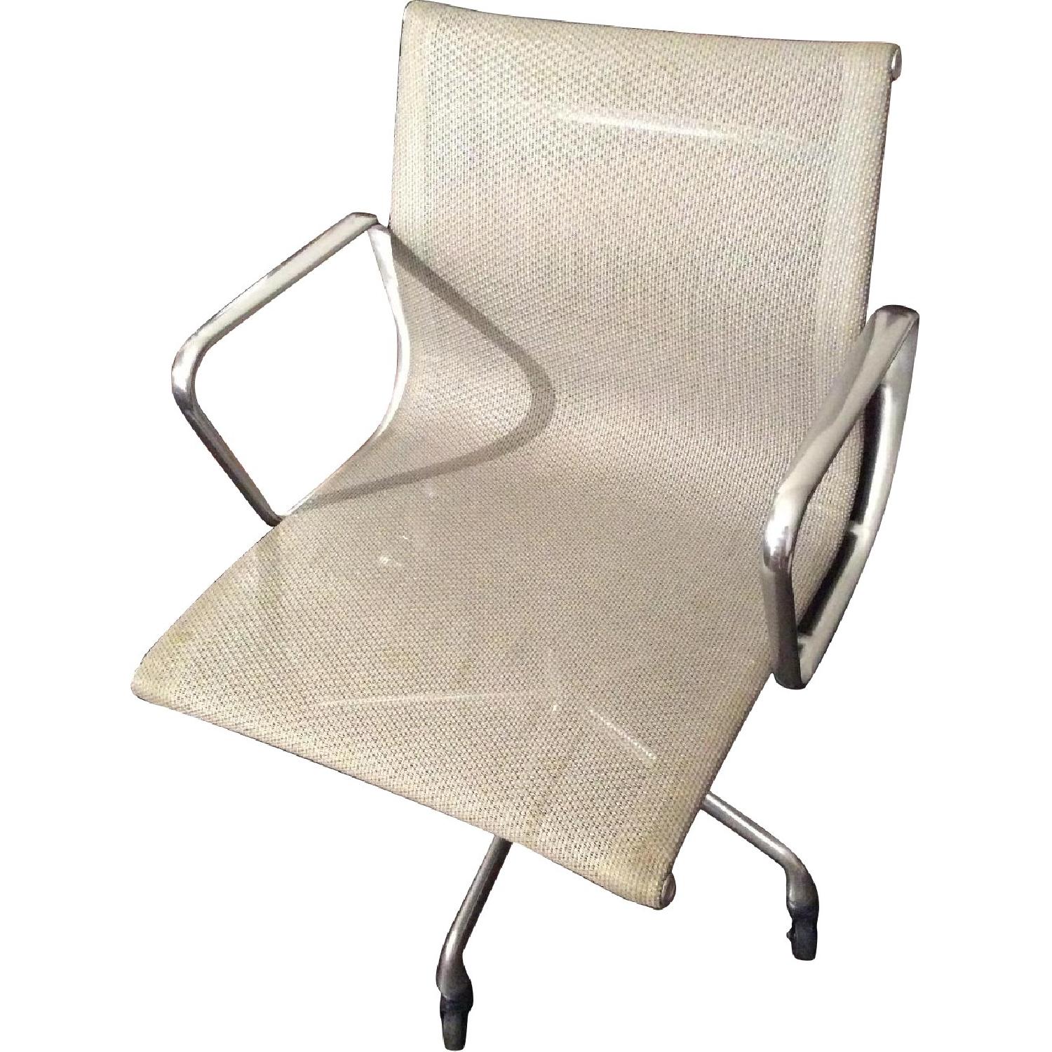 Seller's Notes:Polished die-cast aluminum base and frame with tubular steel column; Cygnus Mesh, 69% elastomeric, 31% polyester. Adjustable aluminum base and wheels are in great condition. Quartz-colored mesh has some minor smudges that could easily be cleaned to look like new. See original product info here: http://www.dwr.com/product/eames-aluminum-management-chair-mesh.do and here: http://store.hermanmiller.com/Products/Eames-Aluminum-Group-Management-Chair