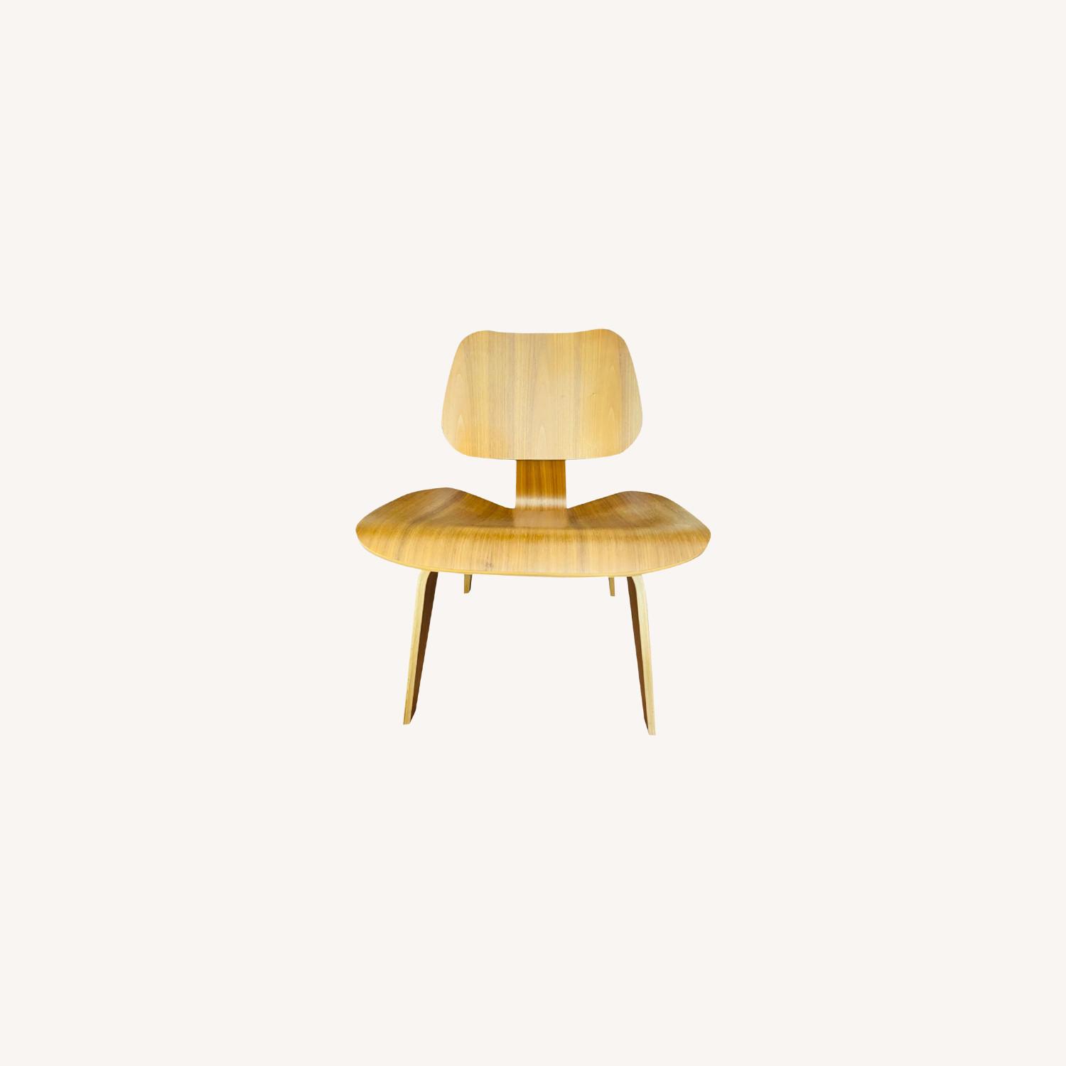 Seller's Notes:Eames for Herman Miller plywood lounge chair with wooden base in walnut. Molded five-ply seat and back, with eight-ply legs and back brace. Rubber shock mounts prevent jarring movements. Dimensions: Height (in): 26.38 Width (in): 21.65 Depth (in): 25.2 Weight (lbs): 19.84 Seat Height (in): 15.35 Seat Width (in): 21.65 Seat Depth (in): 19.29 Condition: excellent