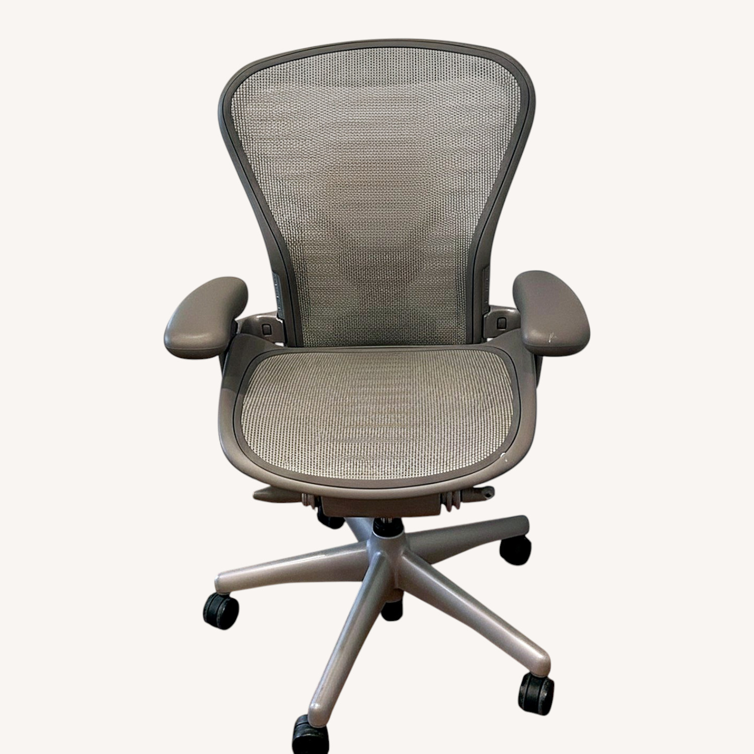 Seller's Notes:This sturdy, comfy Herman Miller chair has been used periodically for work & crafts at home since I purchased it in 2009. It is easy to maneuver on various types of floors. Arm rests adjust to “open” position easily. Spending more time at the office in early 2000s meant the chair didn’t get heavy use.
