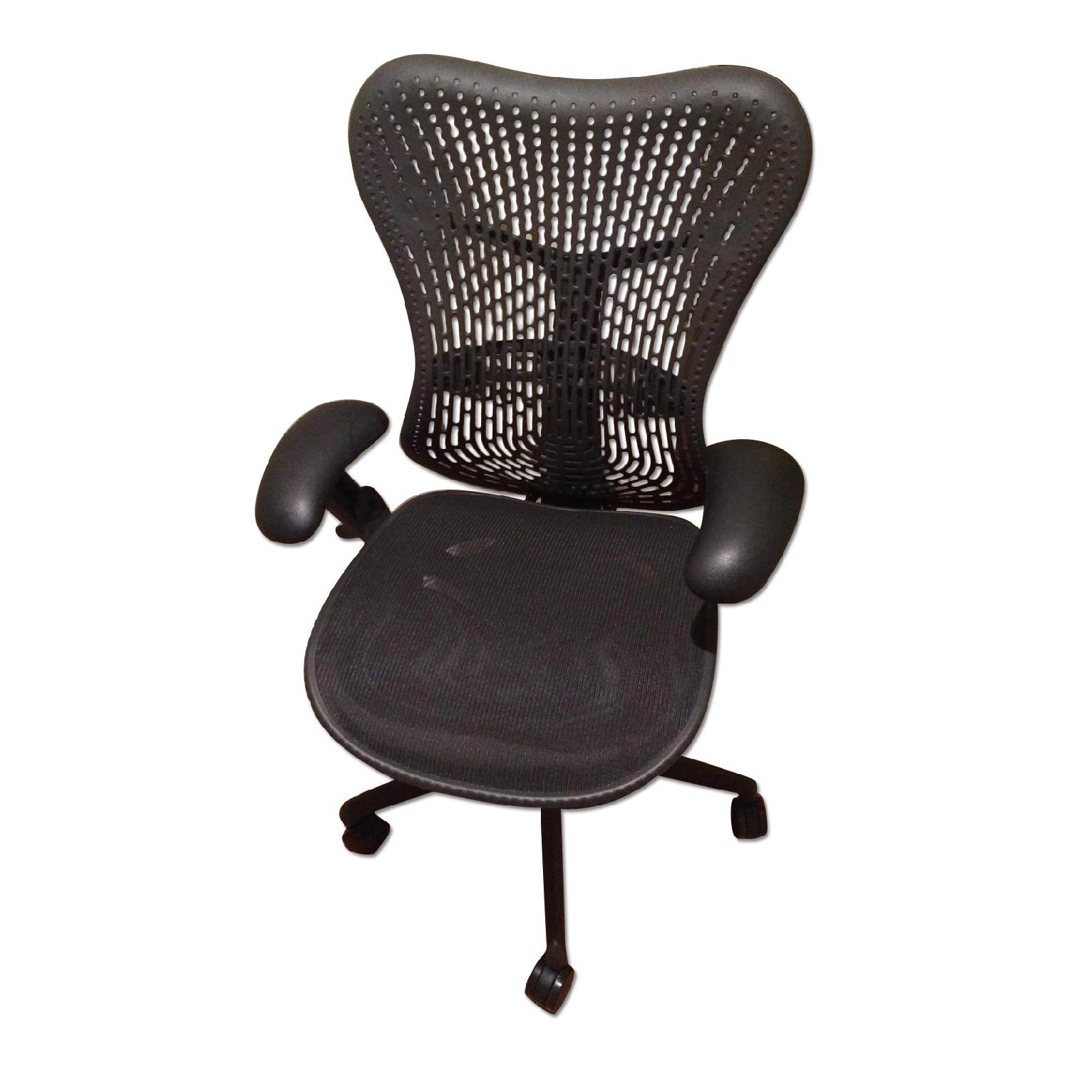 Seller's Notes:Just moved in with partner, and no space for the chair. MR223 - Deluxe Fully Adjustable Graphite with forward tilt seat angle Mirra Deluxe MR223 with Forward Tilt Seat Angle, Tilt Limiter, Adjustable Black Arms, FlexFront, TriFlex, Adjustable Lumbar, Graphite Base, Graphite Back, Graphite AirWeave Total Back Support - No adjustment needed. The pliable, elastic TriFlex back supports the entire spine and conforms to size, posture, and movements. Passive PostureFit performance. A camber shape at the base of the back gives healthful, comfortable support to the lower back below the beltline. Custom Seat Comfort - AireWeave suspension. This elastomeric suspension seat follows the contours of the body, distributes pressure evenly, and provides aeration. FlexFront seat edge. The sitter adjusts the seat depth without moving the seat pan; there's never a gap between the seat and backrest. A Balanced Ride - Easy motion. The Harmonic tilt creates pivot points at the hip, knee, and ankle to allow easy and natural movement. Advanced spring technology Aesthetic Appeal - Innovative look. Mirra has a clean, light-scaled design that reveals the chair's features and function. Colorful choices. The backrest and seat suspension come in a range of colors that mix or match to complement interiors and other furniture. Traditional touch.