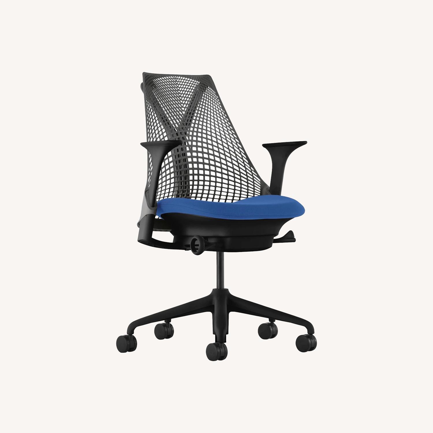 Seller's Notes:Ventilated elastomer back flexes with your body and permits free air circulation. Harmonic Tilt supports the way you naturally move for a smooth and balanced recline. Sayl is 90% recyclable. 40¾" H 24½" W 26" D Detailed Dimensions SEE 1 BROKEN WHEEL, OTHERWISE THIS IS BRAND NEW WITH TAGS, NO STAINS ETC.