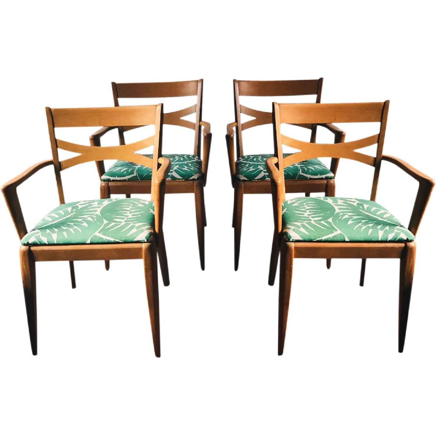 Seller's Notes:Authentic vintage Heywood Wakefield dining chairs - set of four. In great condition. All four chairs have arms, and were recently reupholstered in designer frond fabric. Have barely been used since purchased over two years ago. We are moving and do not have a place for them.
