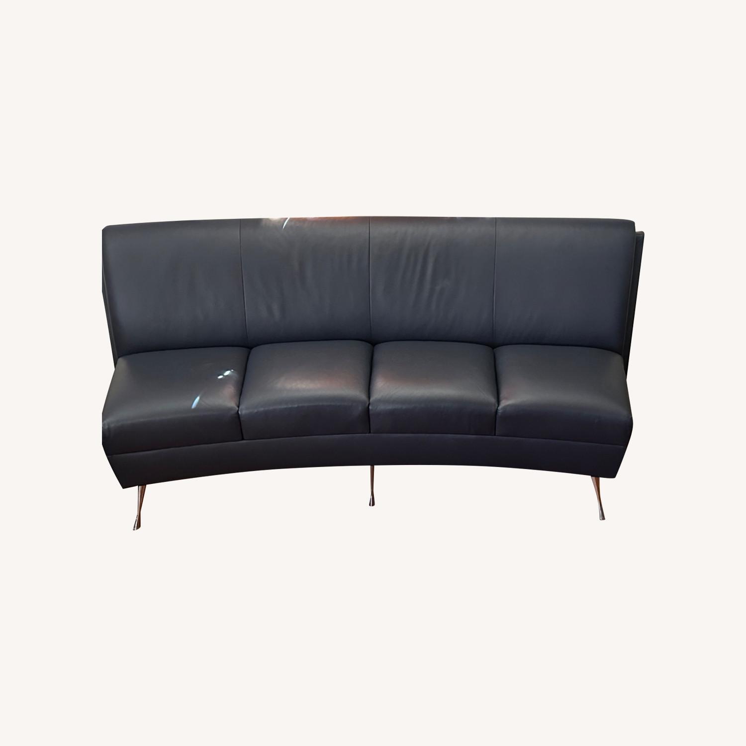Seller's Notes:High end leather curved navy blue sofa. Top quality. Office or home seating. Chrome legs. Modern contemporary style. Optional matching two side tables can be sold separately. Each sofa $450.00