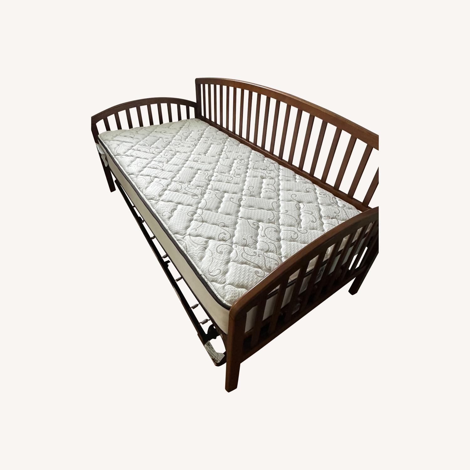 Seller's Notes:The Hillsdale Carolina Daybed is a versatile and straightforward piece, it was in our guest bedroom so it was used only a couple of times. Crafted from solid wood, it showcases timeless vertical slats on the back and sides. The set includes a suspension deck and a roll-out trundle, providing extra sleeping space or storage. It can accommodate two twin mattresses (mattresses not included).