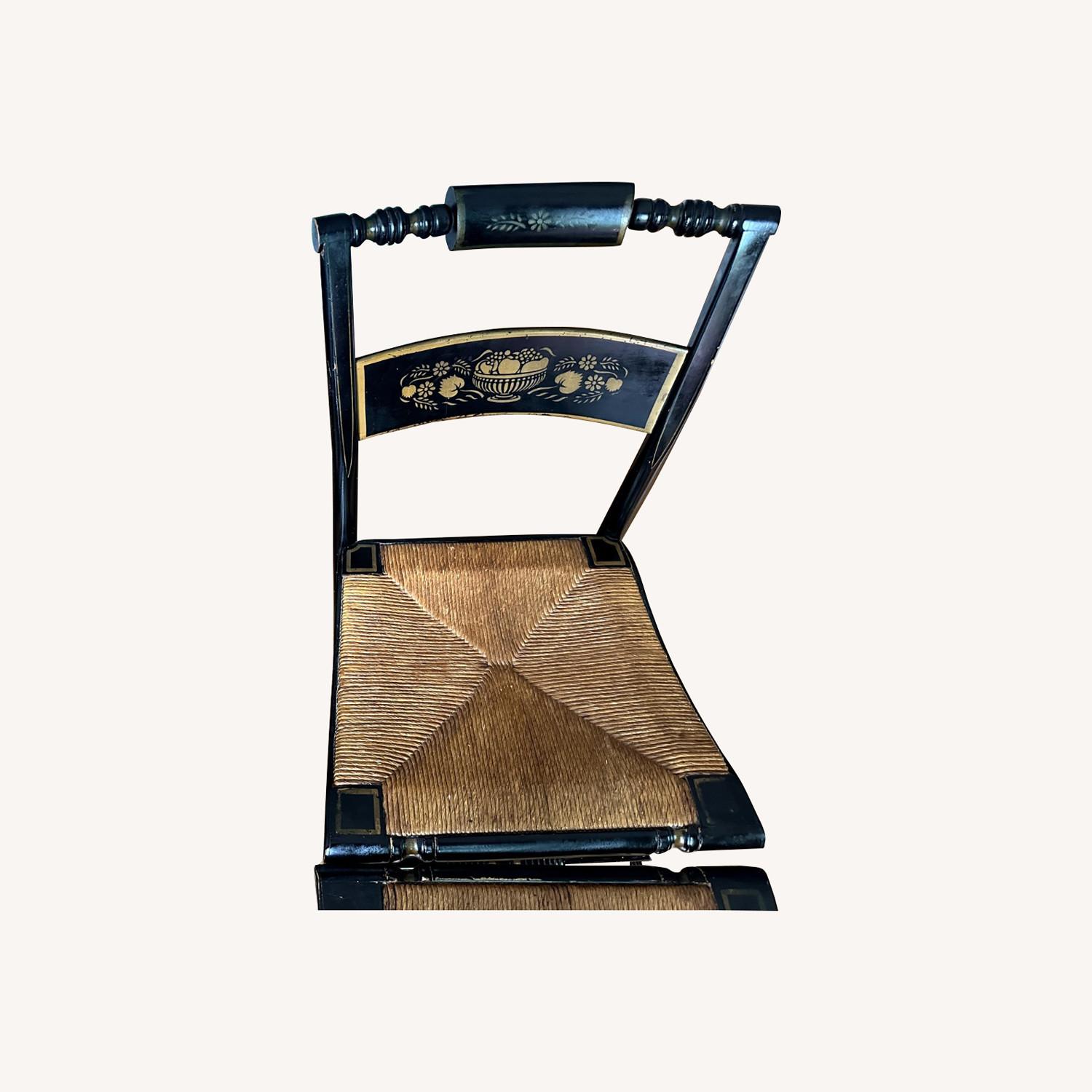 Seller's Notes:These are vintage Hitchcock style dinning room chairs. They have been in the family since the 1950's and they are in great condition. There are sturdy. There is one that has a minor piece of wood missing. Also, one of the grass strings is broken. However, the weaving is so well done that this small imperfection does not compromise the integrity of the chair, it is an easy fix.