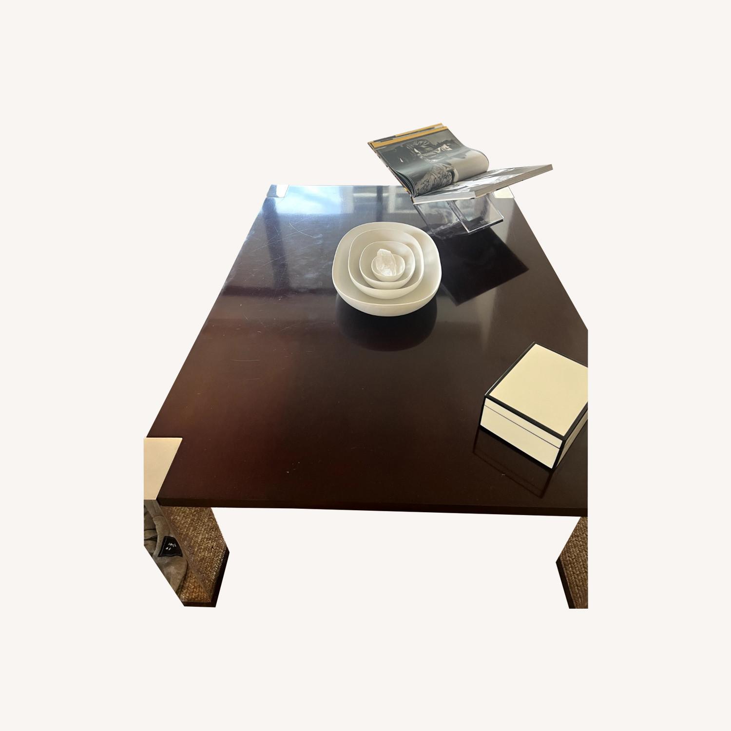 Seller's Notes:Designer piece, wood and metal coffee table purchase at D&D - Holly Hunt