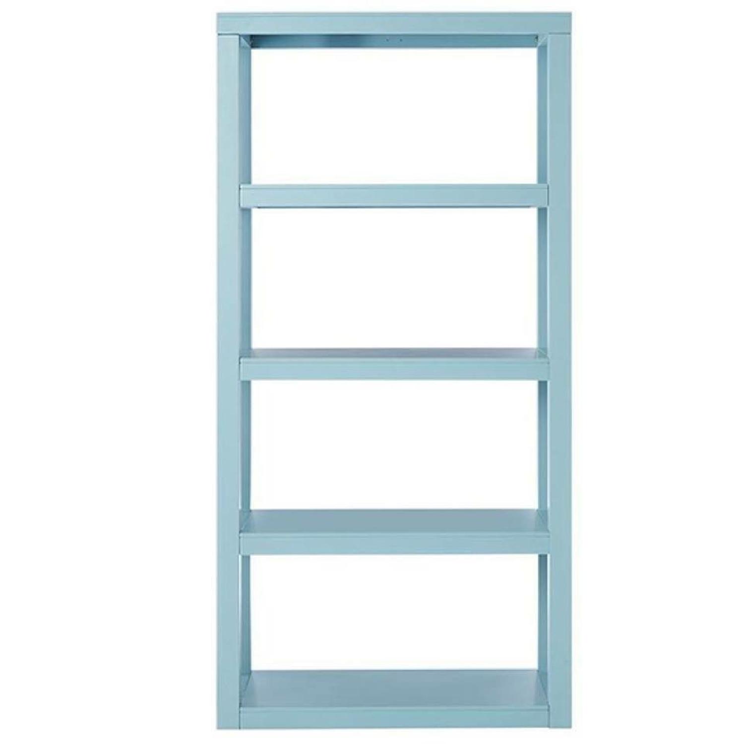 Seller's Notes:I'm reluctantly parting with my beautiful robins egg blue parsons bookshelf after a good run together. It will not fit in my new apartment, so I'm looking to find it a loving home. There is one small dent near the back (see photo) but otherwise it is in pristine condition. Perfect for displaying books and other items (see a peak at my collection in the photo).