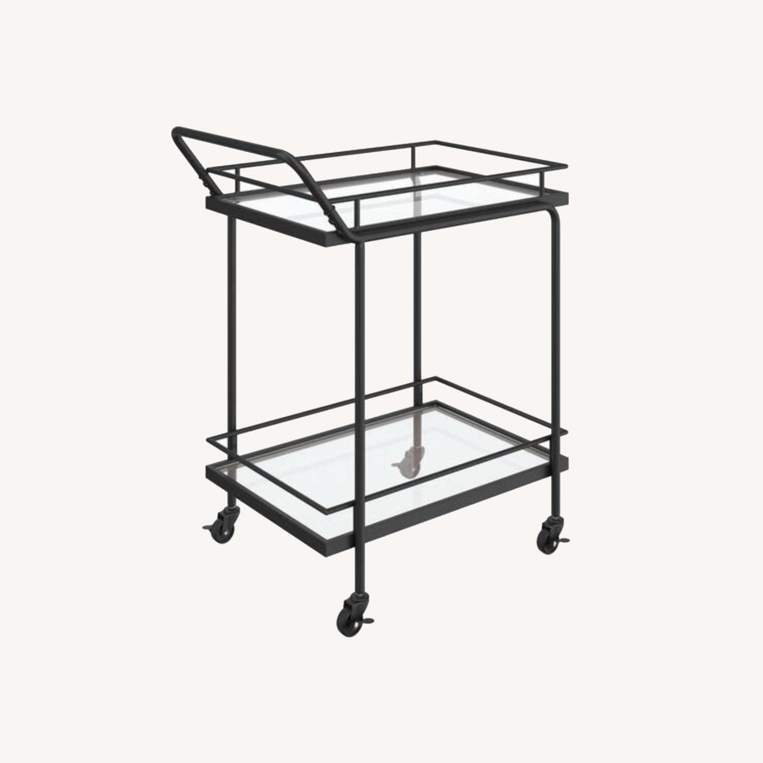 Home Depot 2-Tiered Black Metal Frame Glass Rolling Bar Cart