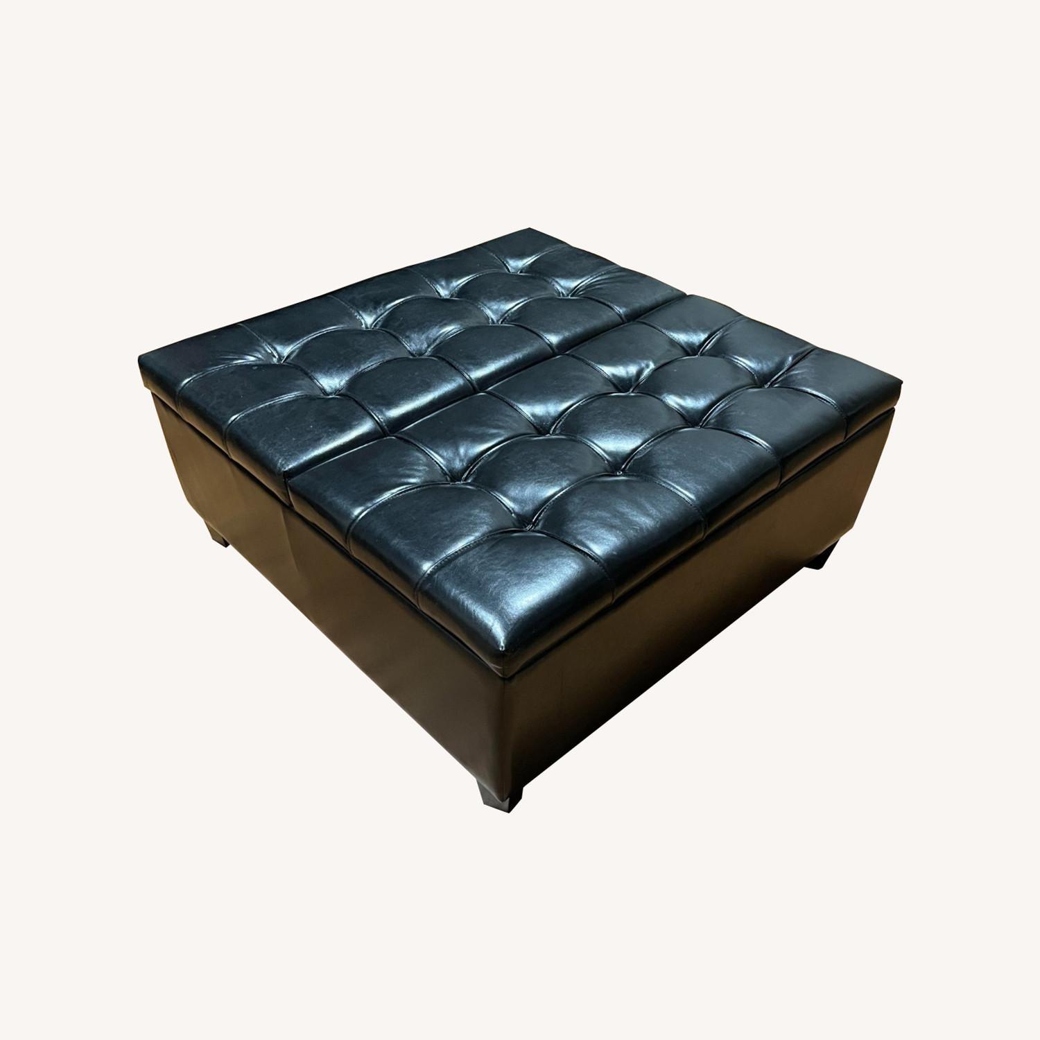 Home Depot Black Vegan Leather Button Tufted Ottoman