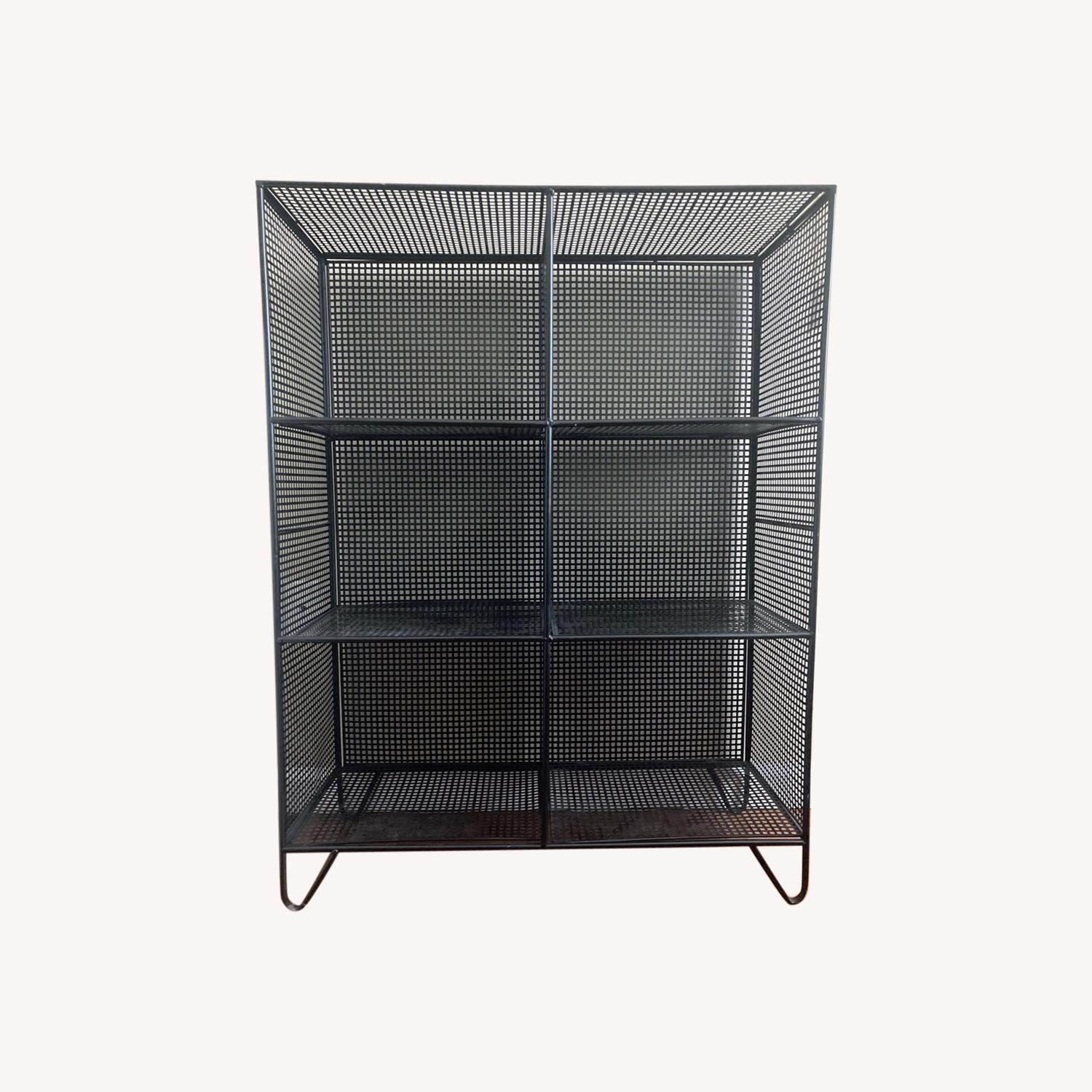 Seller's Notes:Black metal six-cube storage unit. great condition.
