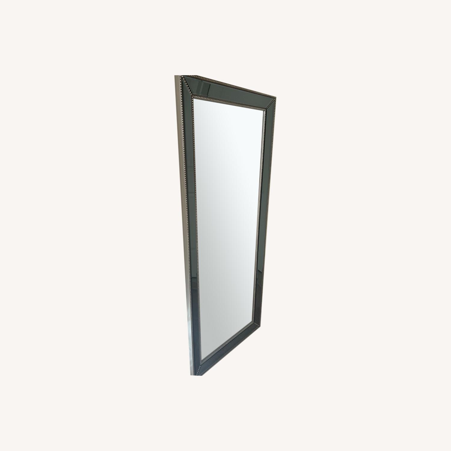 Seller's Notes:This is a mirrored mirror with studded detailing in the frame. This mirror can be used as a leaning wall mirror or hung on the wall vertically or horizontally. It comes with brackets for wall placement if desired. This mirror was purchased in Home Goods for $199.99 and is in PERFECT CONDITION!