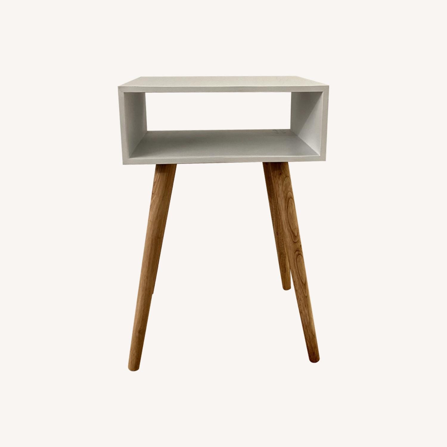 Seller's Notes:Glossy white wooden nightstand or side table. Two shelved. Very modern and simple to decor with.