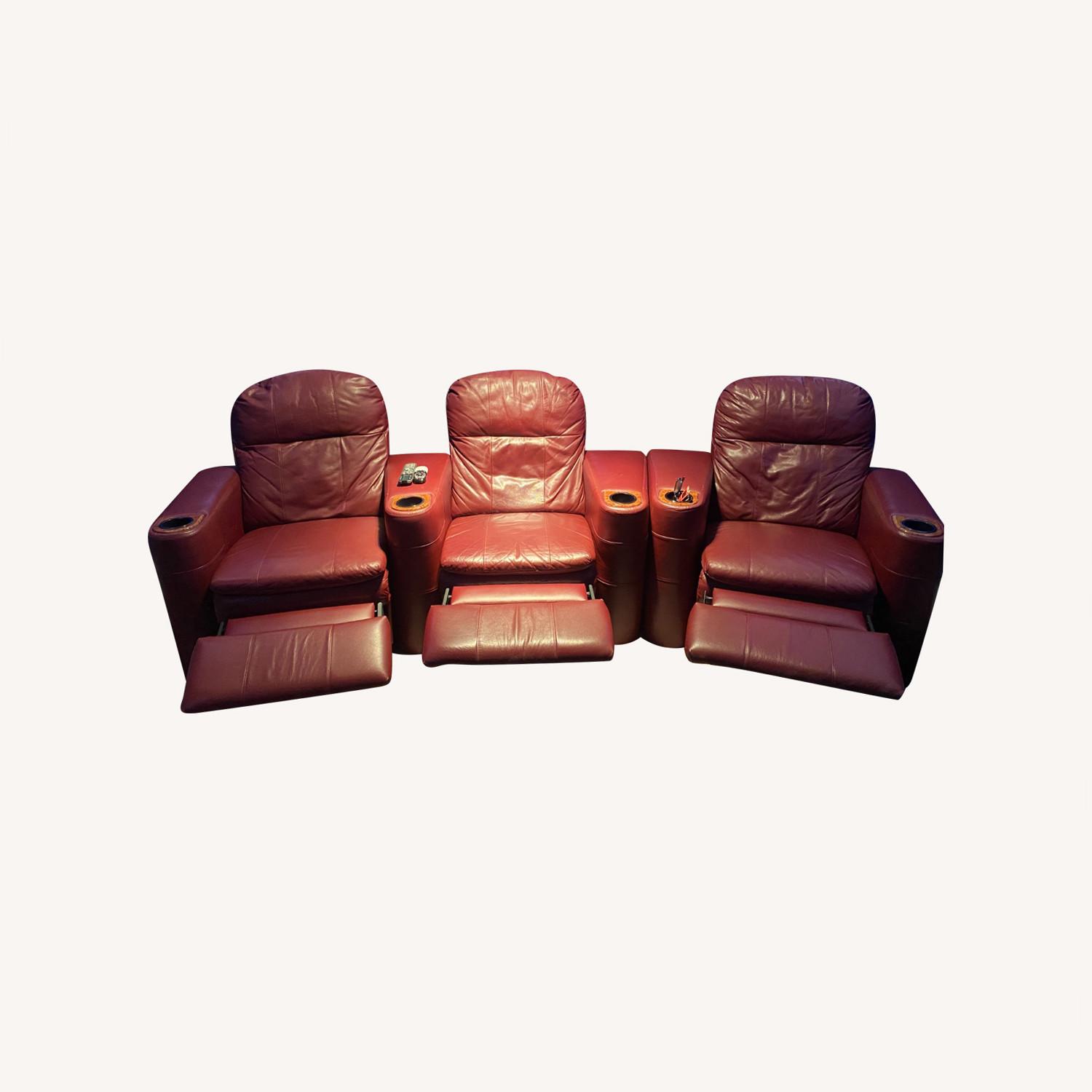 Seller's Notes:Lightly used and beautiful cognac home theater recliners. Desire is to sell all 7 as a set for $1000 or individually for $200 each. Chairs fully recline. Not all chairs are identical as some have 1 cup holder and others have 2 cup holders, thus, some chairs are wider than others. Perfect for watching TV, movies, and sporting events. Must be able to remove the chairs from a basement theater and take up 15 stairs which includes a 'u' shaped landing approximately 1/2 way up. These chairs will be missed.