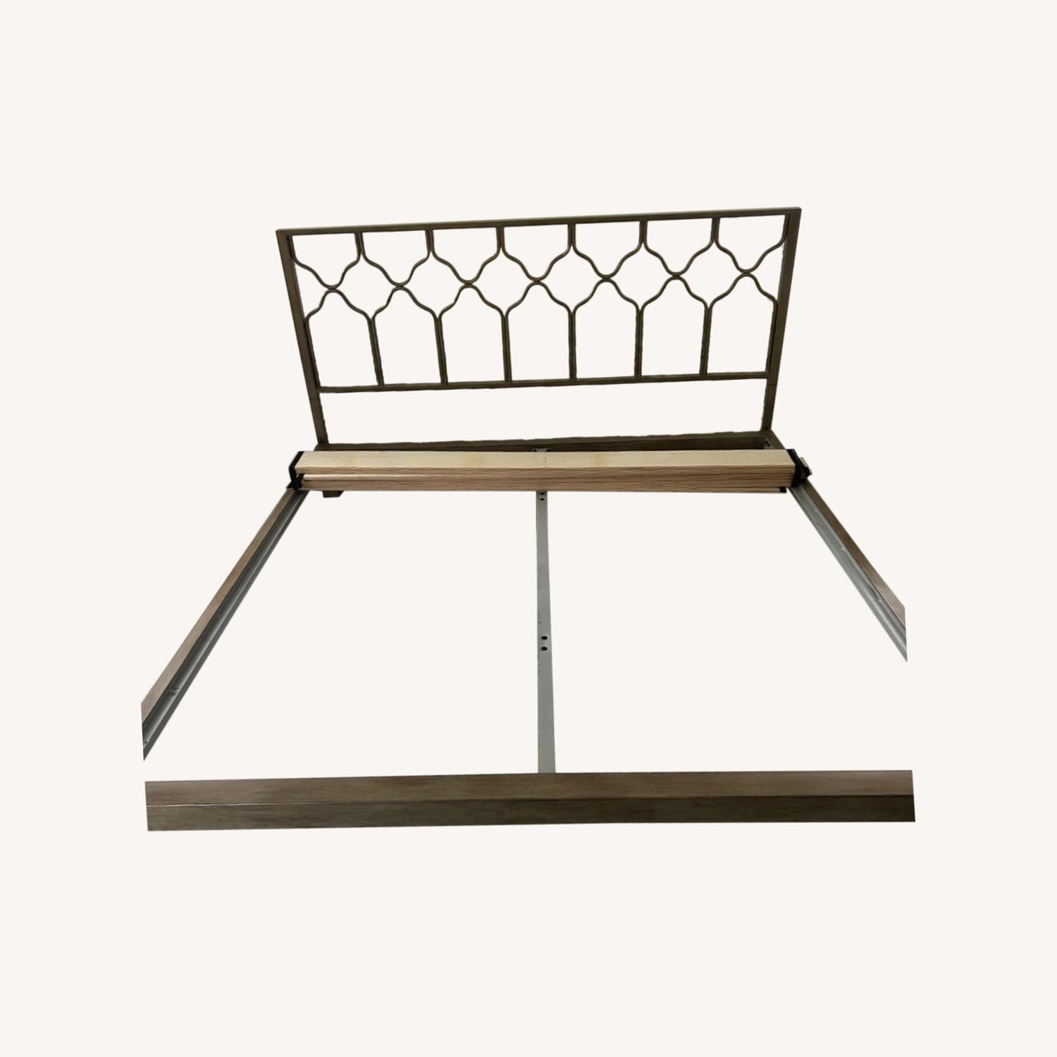 Seller's Notes:King size brushed gold bed. Purchased from Wayfair (Latitude Run) Really pretty muted gold color. Goes with everything. No significant damage. I saw a small drip of paint on one of the legs while taking it apart. Could probably scratch it off but I haven’t tried. Very easy to assemble and disassemble. We got this a couple years ago, but moved and it no longer works in the new space.