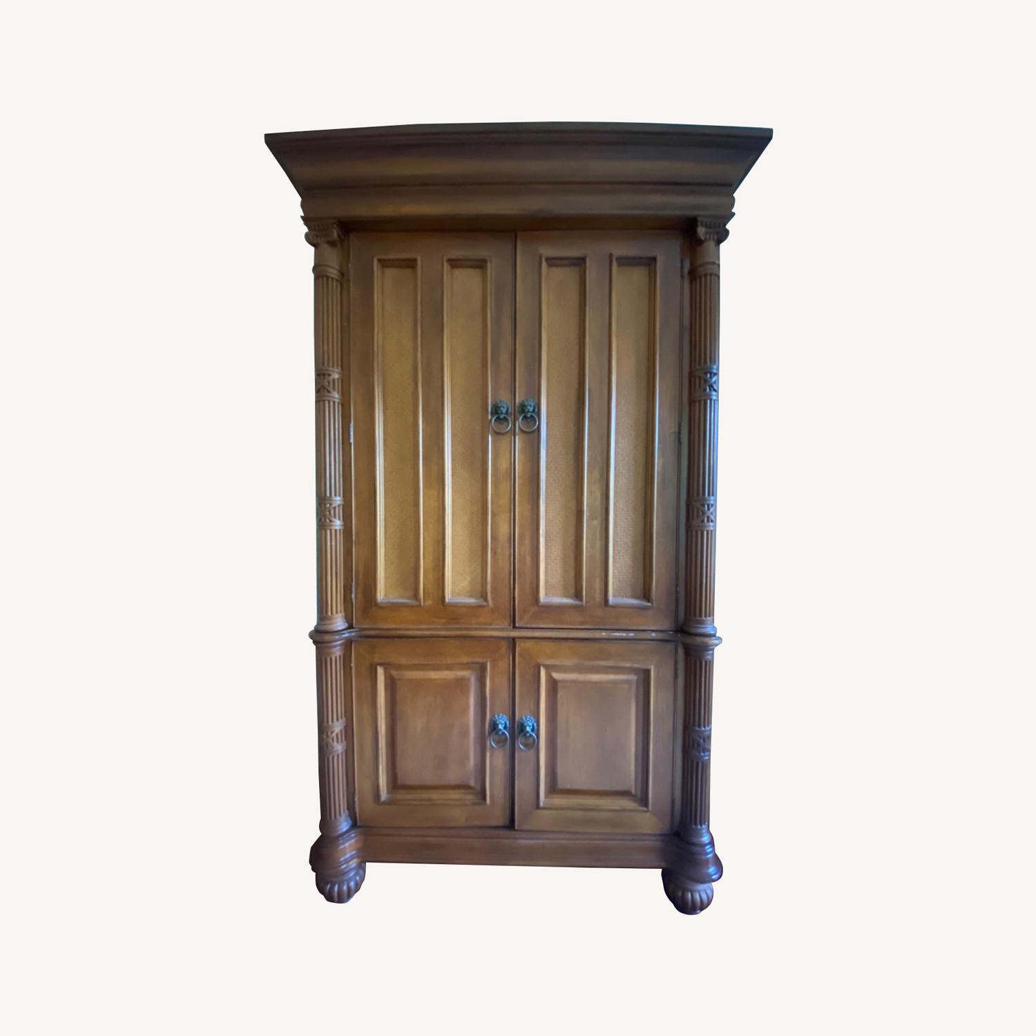 Seller's Notes:MOVING - MUST SELL Beautiful media storage cabinet - with pull out shelves for storage and power strip for components. Doors fold flush with sides. Lovely details on feet and doors. Very solid piece.
