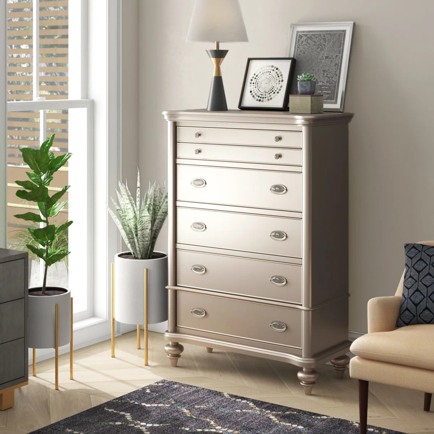 Enhance the look of your bedroom with this chest, creating a unifying visual with the matching bed. This roomy chest offers plenty of storage to help free up precious closet space and makes a great place to display family photos, clocks, and other items.
