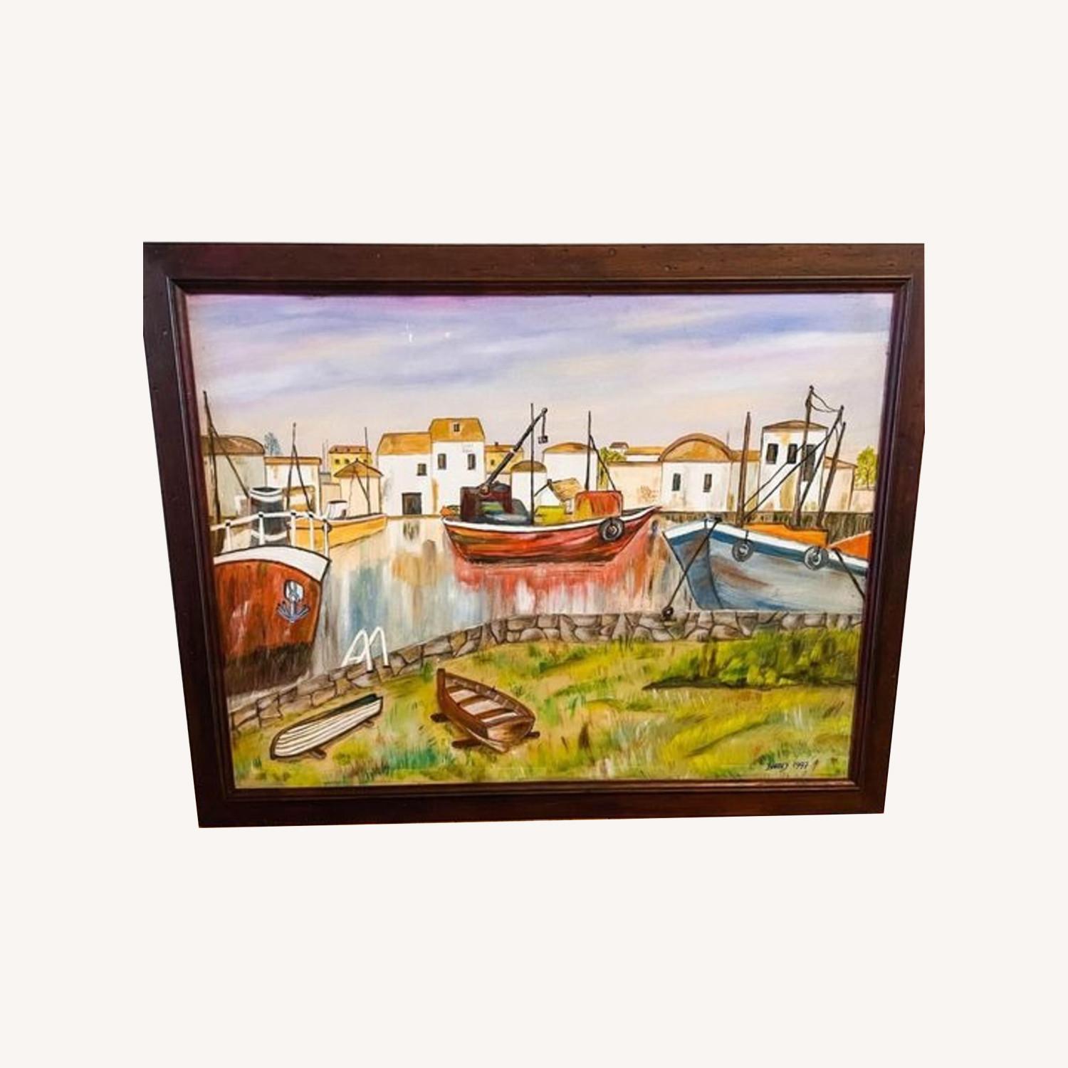 Seller's Notes:Beautiful original painting of Howth Harbour Dublin Ireland with artist signature 1997. Professionally framed canvas. Wooden frame included Dimensions: 26 1/2 x 20 1/2 with frame
