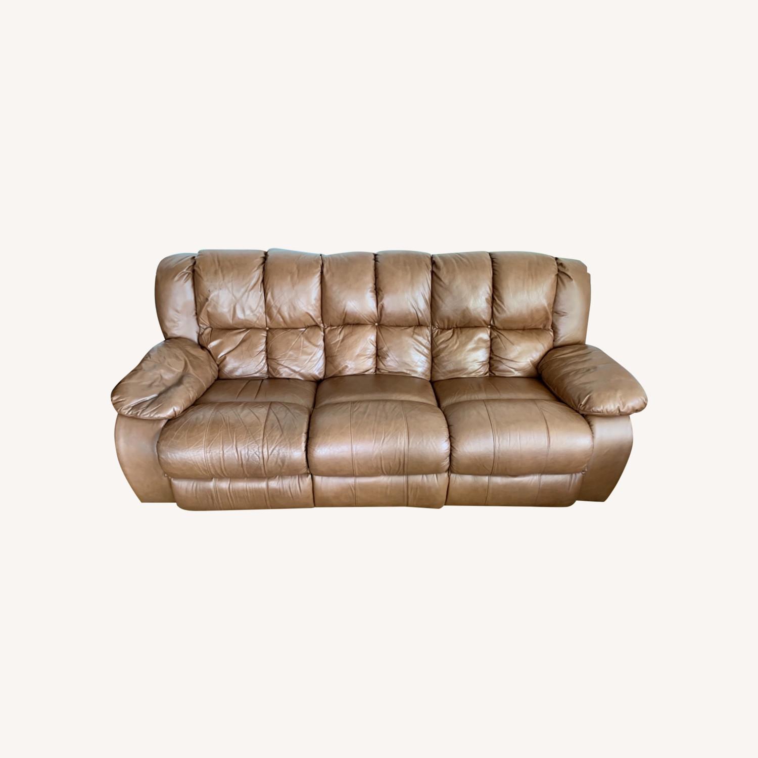 Seller's Notes:This is extremely comfortable sofa with 2 reclining seats. It has some peeled leather spots, so if you cover it with throw, it can be used for many years to come.