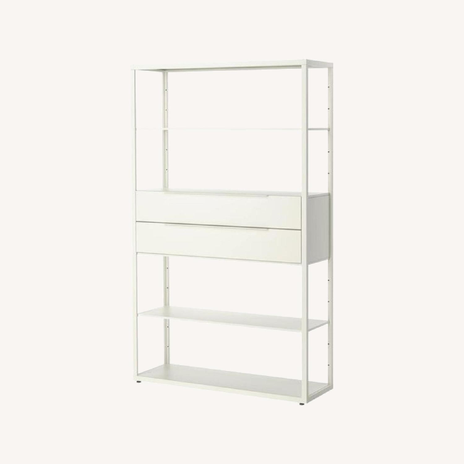 Seller's Notes:FJÄLKINGE Shelf unit with drawers, white, 46 1/2x13 3/4x76 " (118x35x193 cm) Article no: 199.318.65 The long, slender shelves give the shelving unit a light and airy look. And the clean, simple lines make it easy to combine with many styles of furniture. The shelving unit is strong and durable because it’s made of steel. You can easily change the height according to your storage needs as the shelves are adjustable. The drawer's integrated damper allows it to close slowly, silently and softly. Different wall materials require different types of fasteners. Use fasteners suitable for the walls in your home. This furniture must be secured to the wall with the enclosed wall anchoring device. May be completed with KVISSLE paper and media organizers. The drawer holds letter size papers. May be completed with DIODER LED multi-use light. Designer Ehlén Johansson