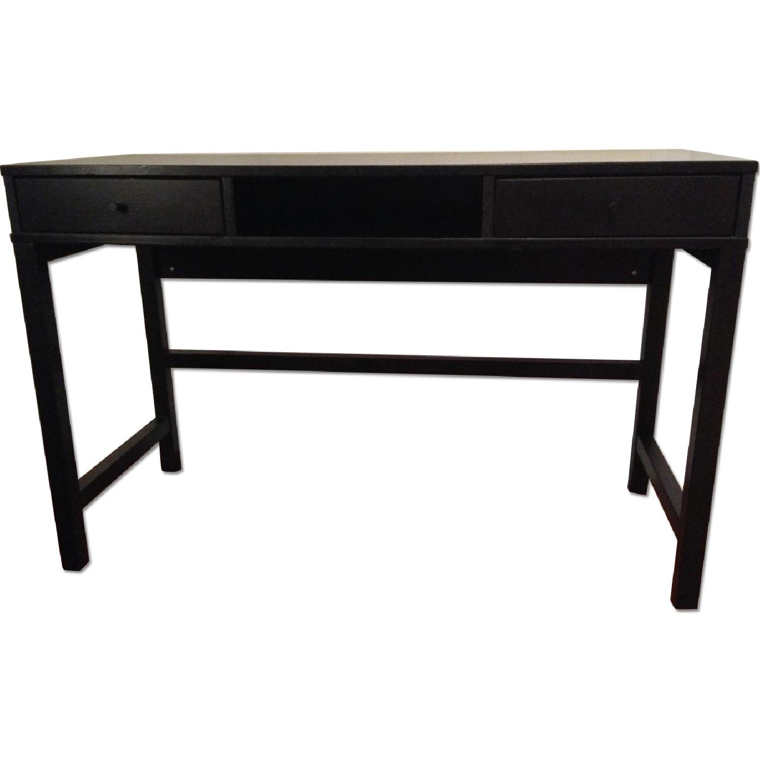 Seller's Notes:Ikea desk, black painted wood-in excellent condition (2) 13.75" x 19" drawers with same size deep cubby-hole in the center