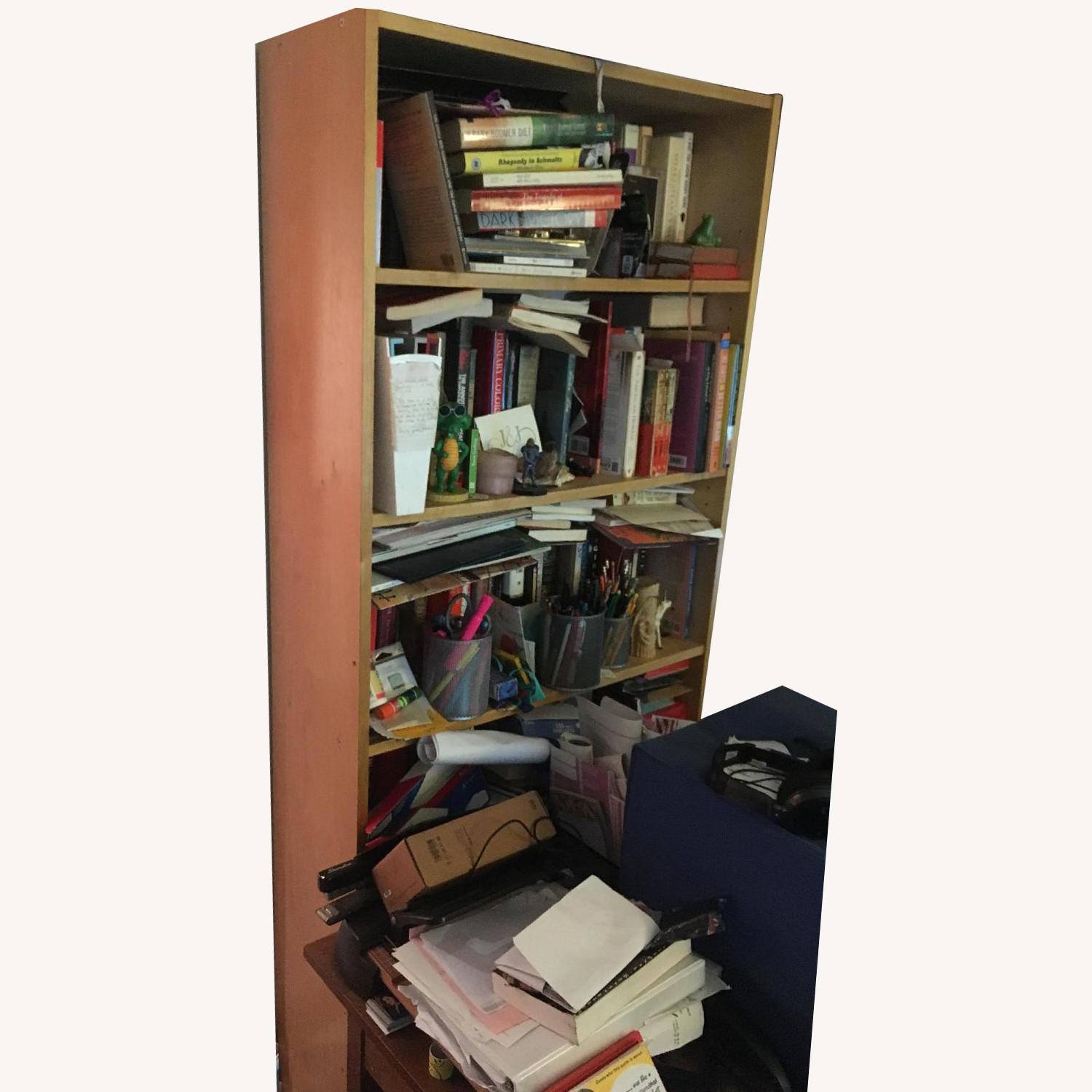 Seller's Notes:This bookcase has served us well for several years (acquired from old neighbors as they were moving out). It is very sturdy and has been filled to the brim (as seen in images). The backing is not attached, but is included. Small nails are suggested for reattachment. 6 shelves, 4 are adjustable (all hardware included).