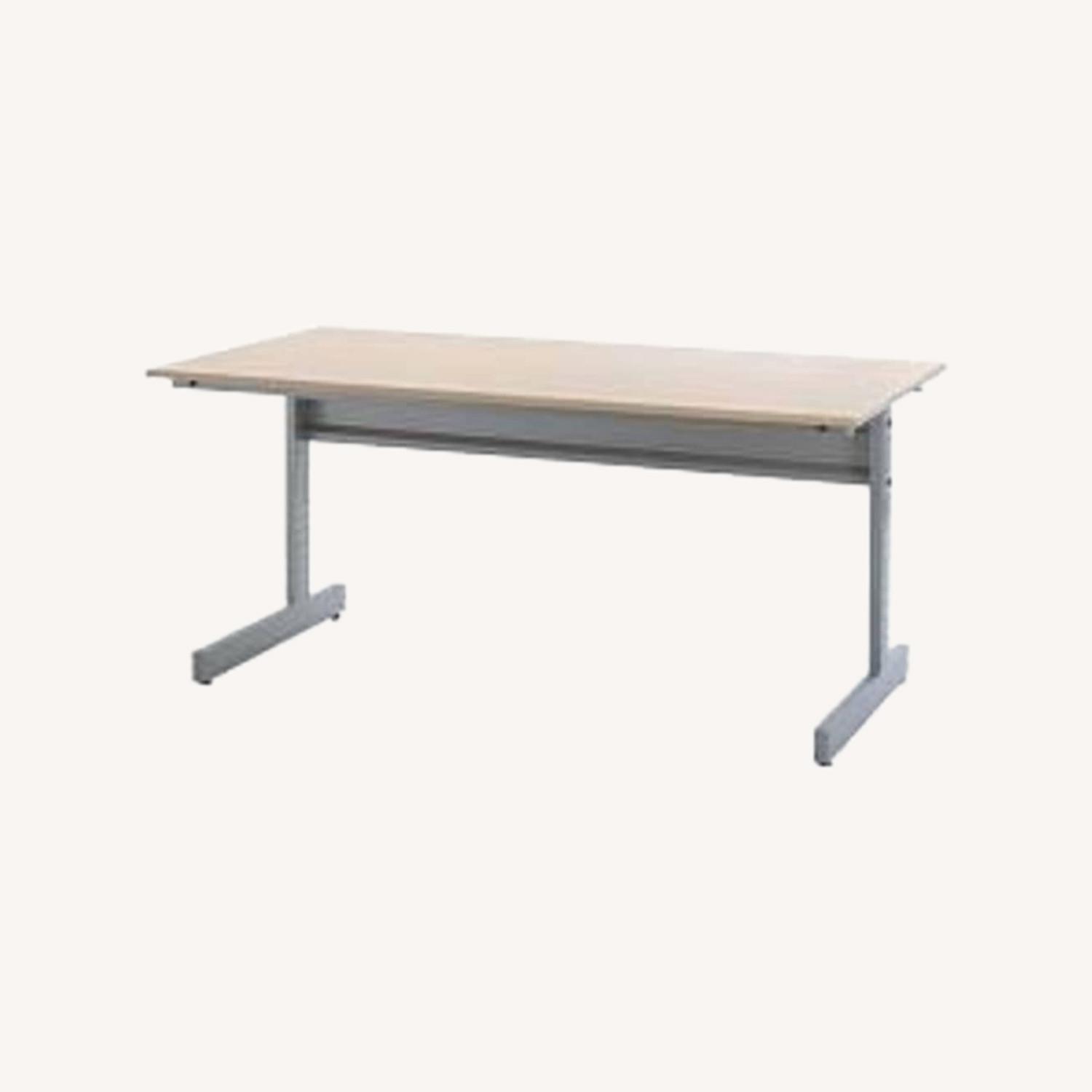 Seller's Notes:Ikea Jerker Desk with Birch veneer top & Cable Tray $100 ___________________ Very gently used & in Great condition Wooden Desktop approx 31” 63” Excellent size for designer Silver Frame Cable tray Included Only reason I am selling it is that I decided to buy a standing desk. Note: the surface is the birch veneer, the lighter wood, not the beech ~RL