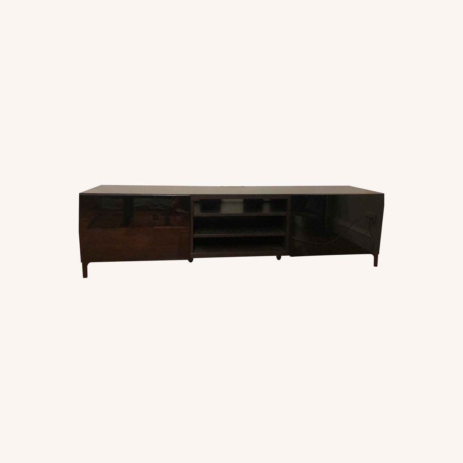 Seller's Notes:Beautiful, black high-gloss and functional TV / media unit, with two large drawers that store away all your living room storage (tv electronics, blankets, extra pillows) and 3 wide shelves for cable boxes, Apple TV, coffee tables books, etc. Only selling because moving to an apartment that is furnished. Bought only two years ago, perfect condition except that the left drawer doesn't close completely flush but not noticeable visually (that's Ikea!). Color is black-brown (but looks black to the naked eye), material is Selsviken high-gloss/black, exact dimensions are: 70 7/8" x 15 3/4" x 18 7/8 " or 180cm x 40cm x 48cm Article Number: 191.886.34 Message me with any questions!