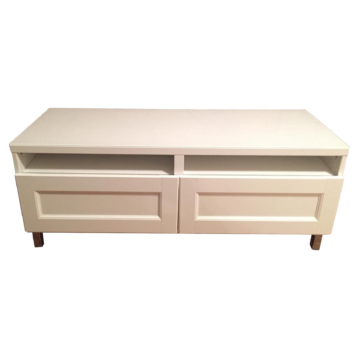 Seller's Notes:Great TV stand with drawers that close silently and softly, thanks to the integrated soft-closing function. Tempered glass top panel protects the top of the TV bench and gives it a different look. It's easy to keep the cords from your TV and other devices out of sight but close at hand, as there are several cord outlets at the back of the TV bench. The two drawers make it easy to keep remote controls, game controls and other TV accessories organized. We recently mounted the TV on the wall and no longer need the TV stand. It's in great condition and looks like new.